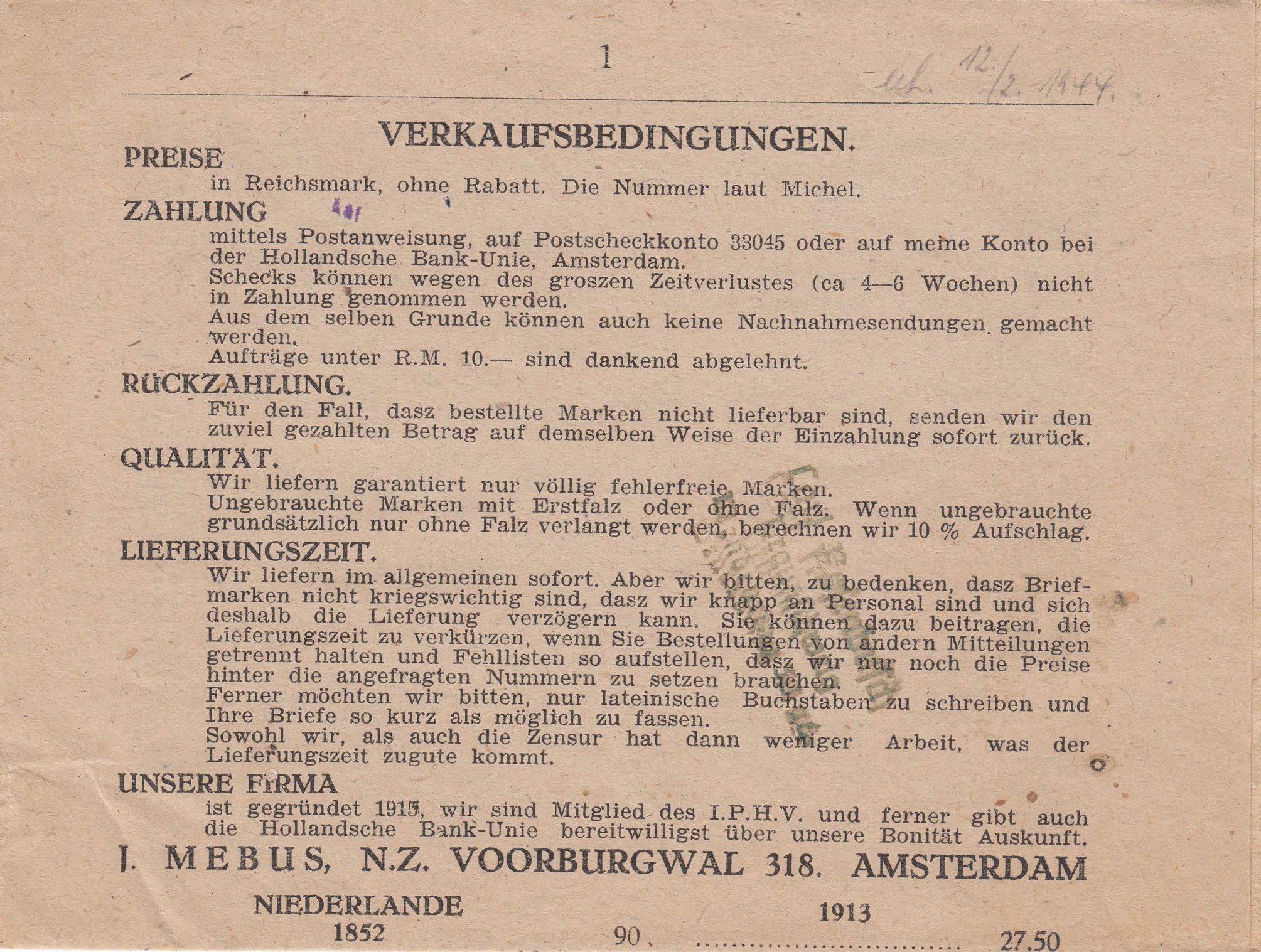 Dieser Verschlusszettel Landsmann CV1.1 kam lediglich von November 1939 bis Februar 1940 in der ABP Köln zum Einsatz!