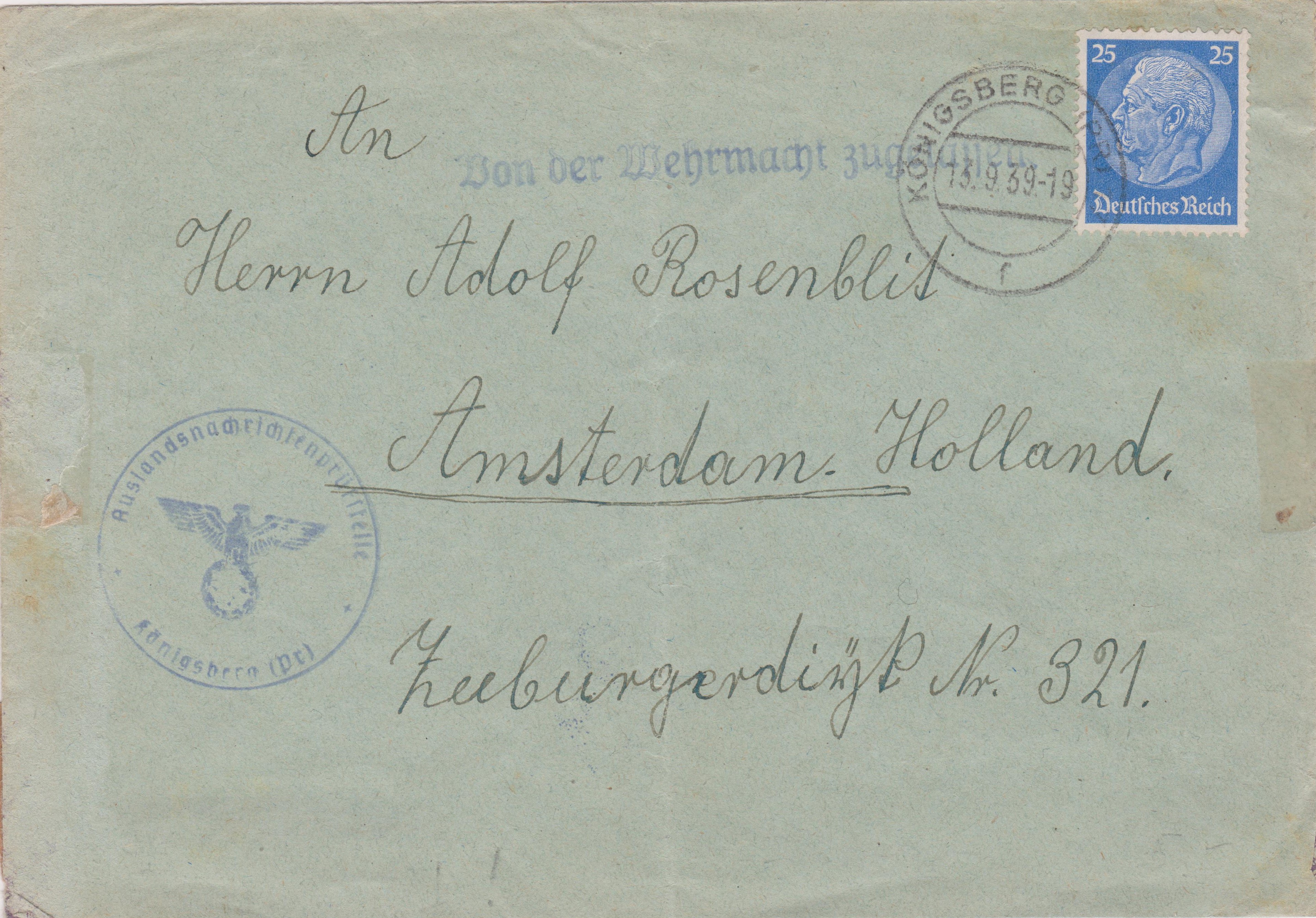 Die Auslandsbriefprüfstelle in Königsberg war bereits vor dem Krieg geplant und nahm spätestens am Montag, dem 04.09.1939 ihre Tatigkeit auf!