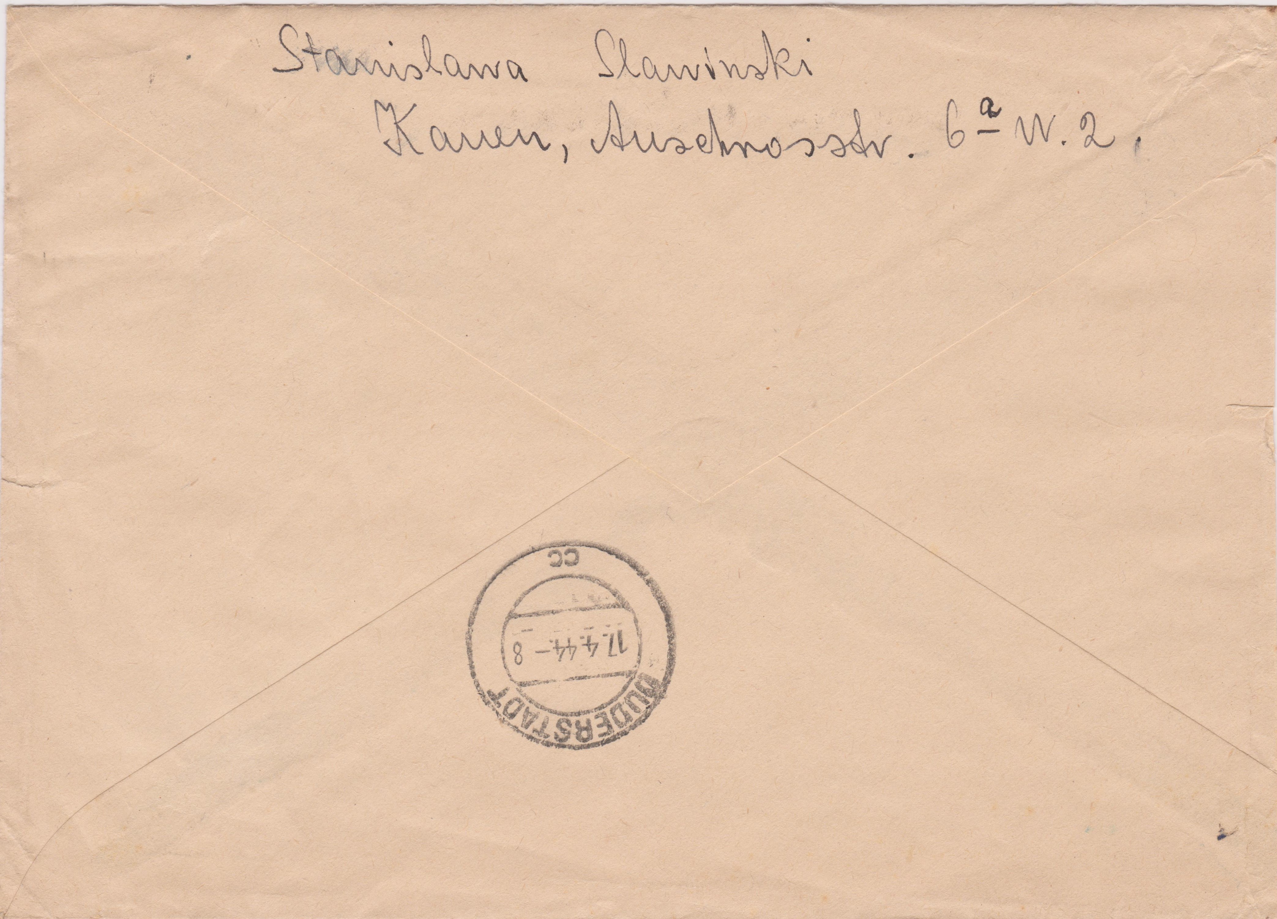 Rückseitig Ankunftstempel DUDERSTADT vom 17.04.1944: