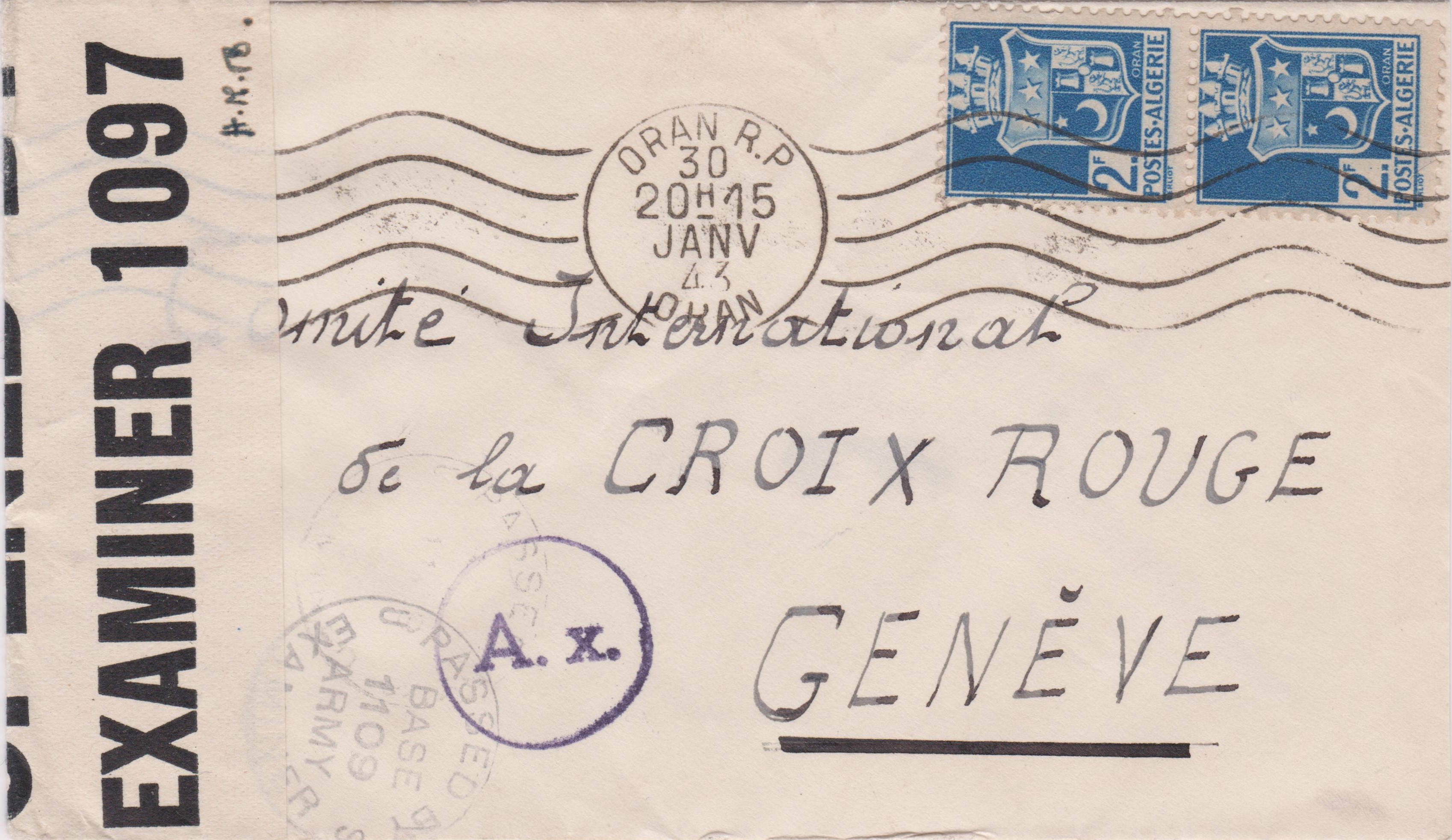 Dieser nach Genf in der Schweiz adressierte Brief wurde am 30.01.1943 in ORAN in Algerien aufgegeben: