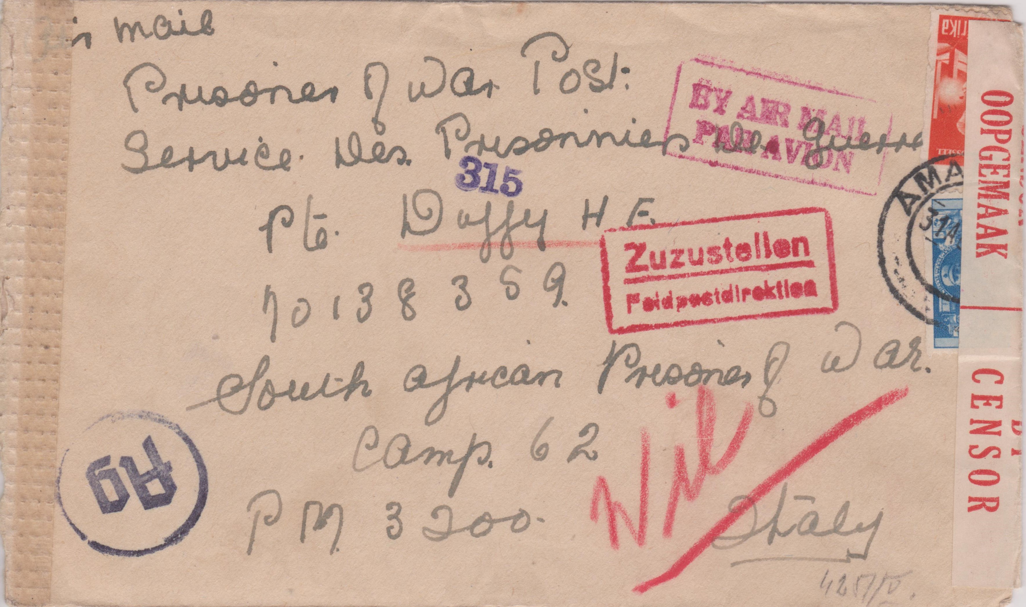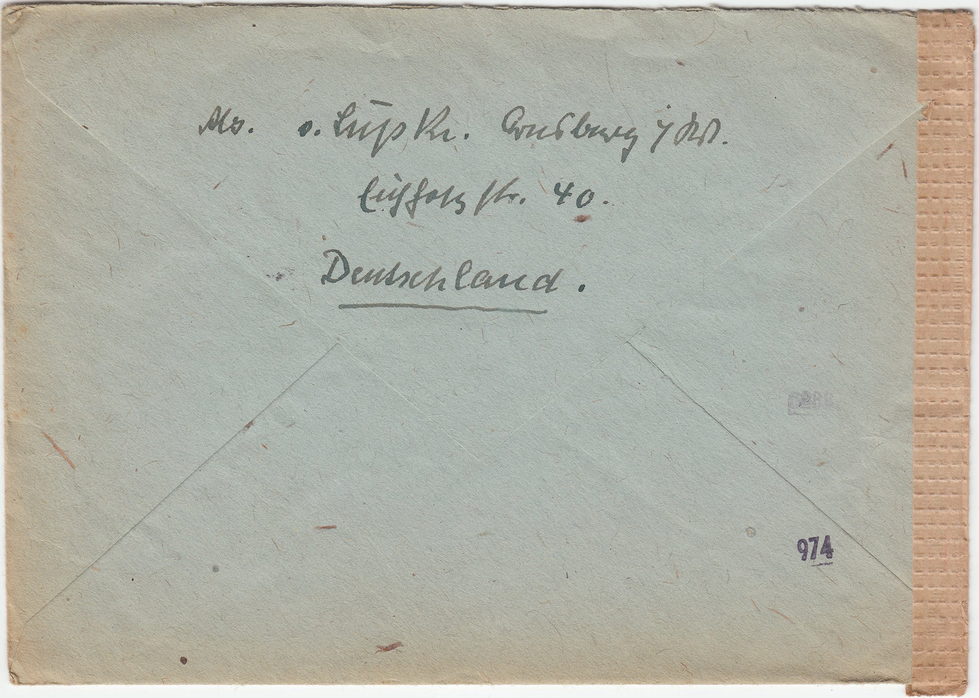 Rückseitig erfolgte eine chemische Zensur mittels eines diagonalen Pinselstrichs: