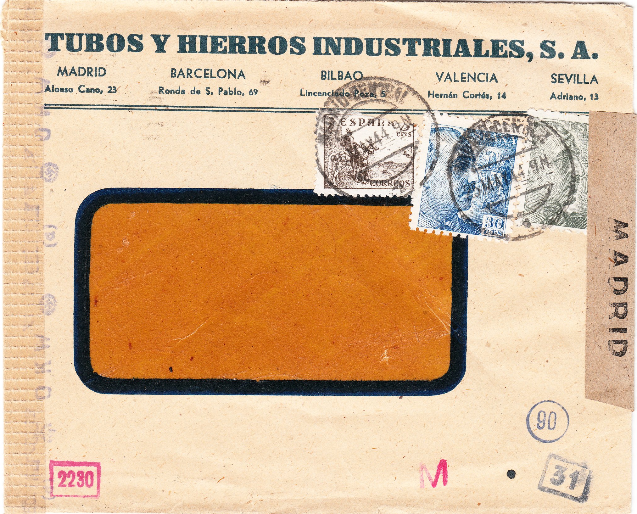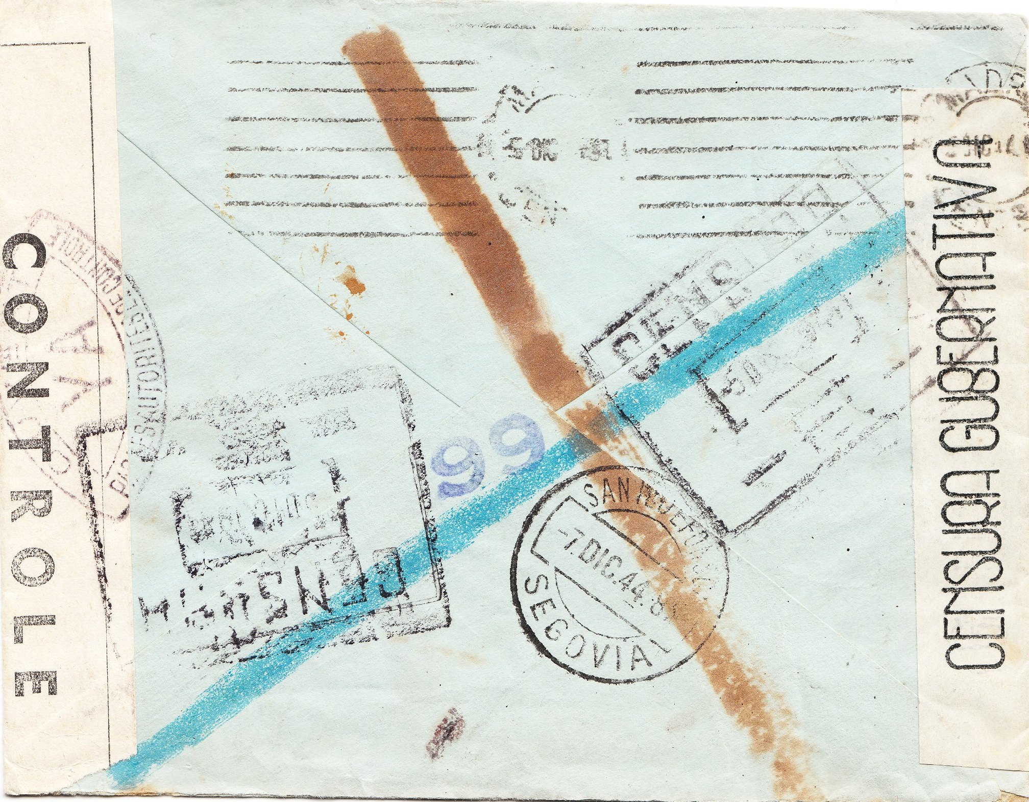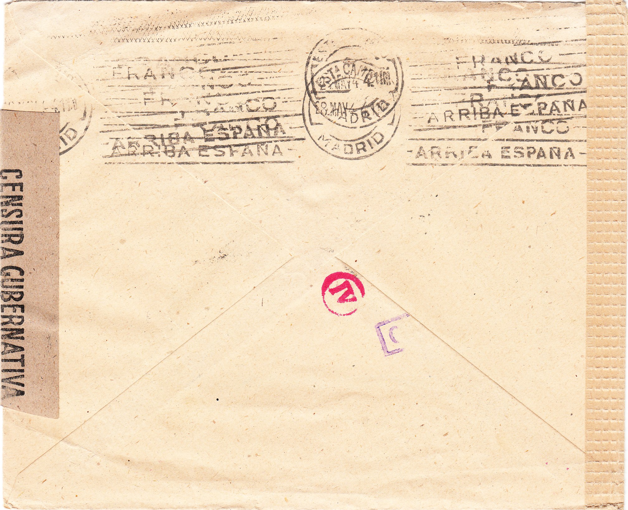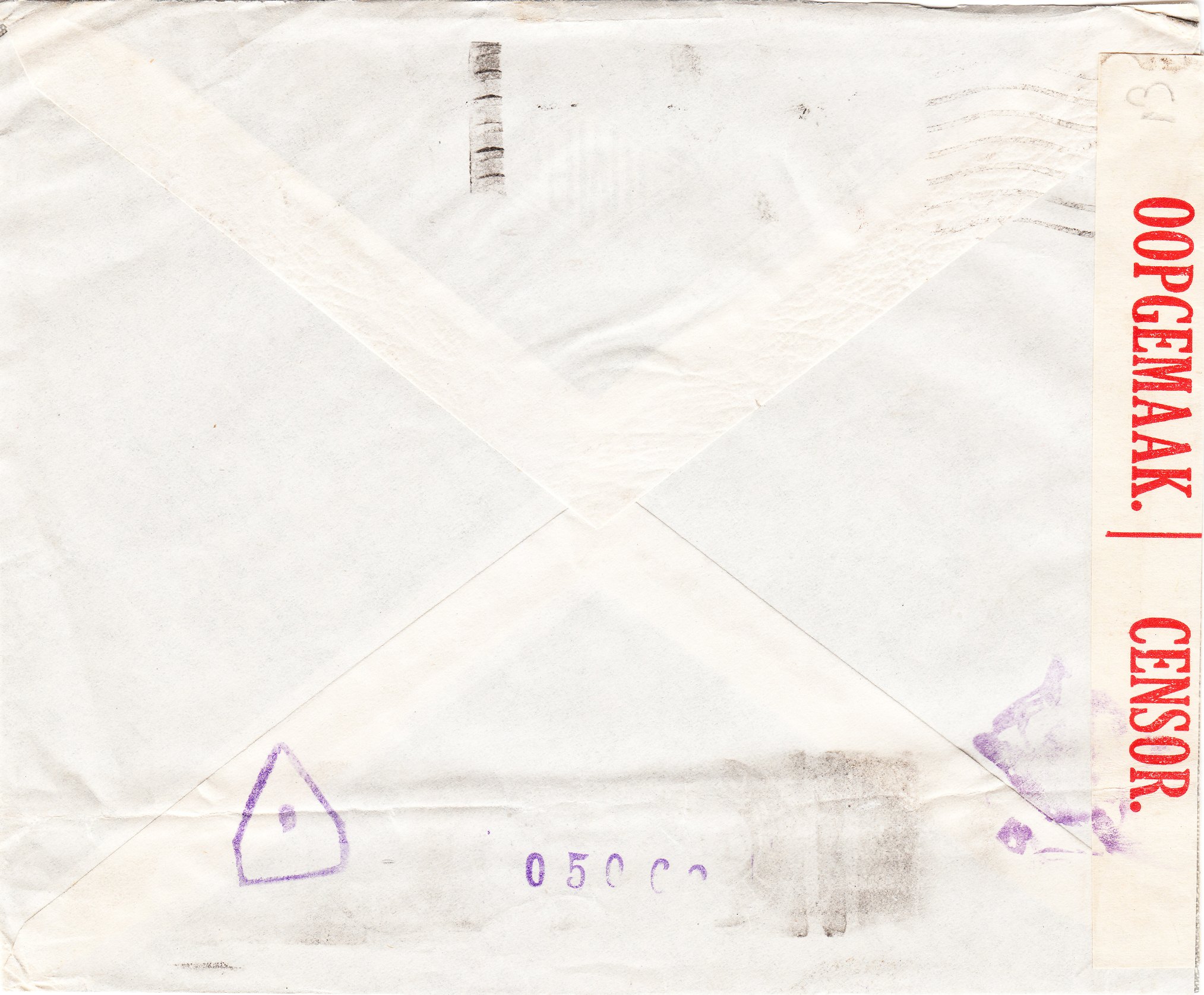Dann durchlief der Beleg die italienische Auslandsbriefprüfstelle in Mailand, wurde dort rückseitig geöffnet und mit einem 20 mm breiten Verschlußzettel mit vertikalen Trennstrichen "VERIFICATO PER CENSURA" wieder verschlossen. Zur Dokumentation wurde rückseitig der Zweikreisstempel "UFFICIO CENSURA POSTA ESTERA II", Außendurchmesser 34 mm, Innendurchmesser 19 mm, abgeschlagen.