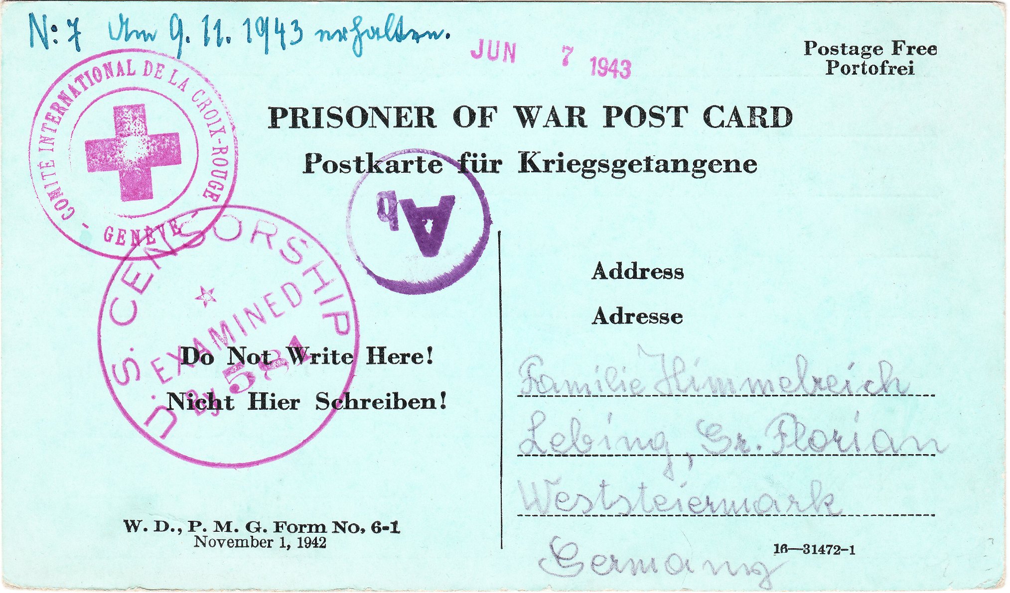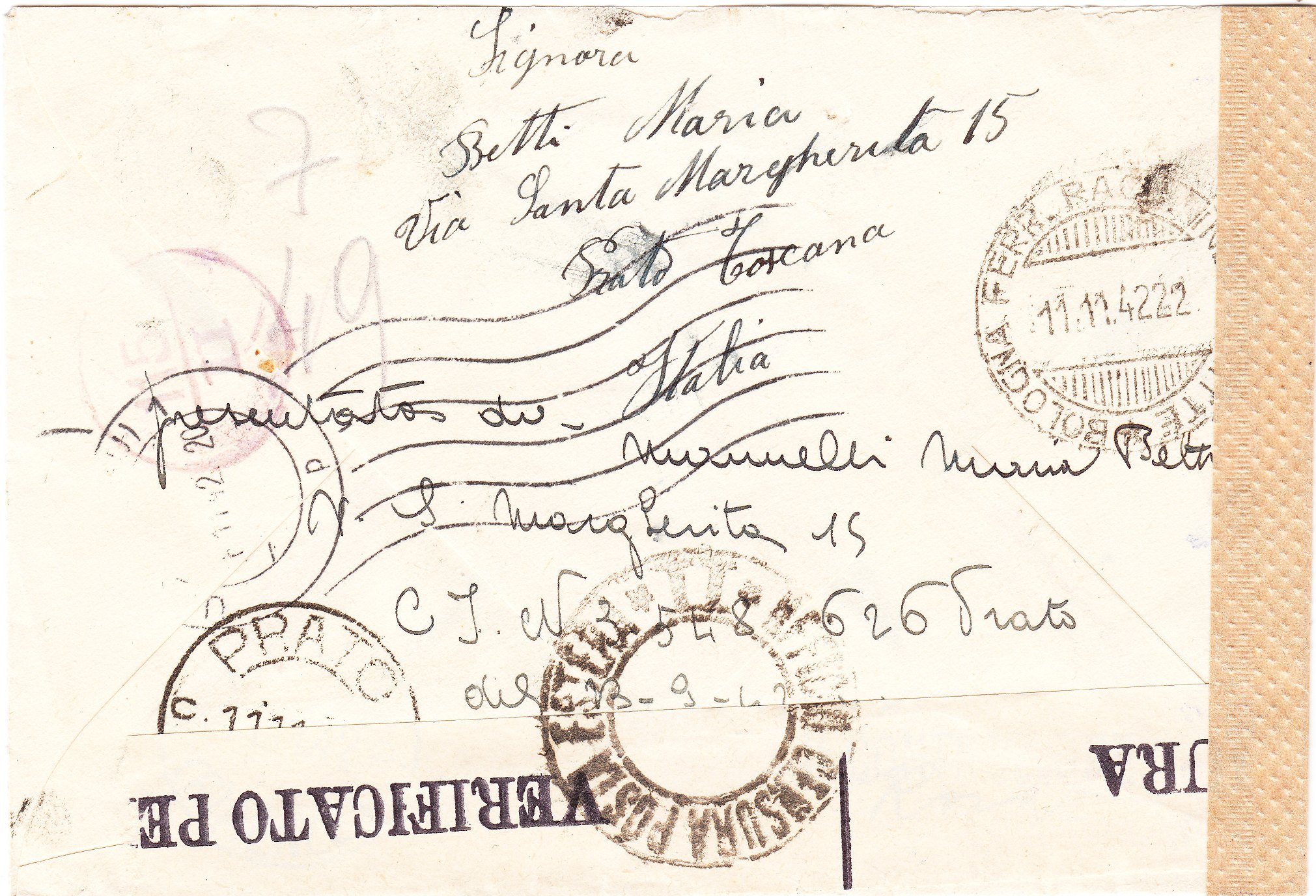 Dieser Brief per Einschreiben wurde am 11.11.1942 in Prato in der Toskana aufgegeben: