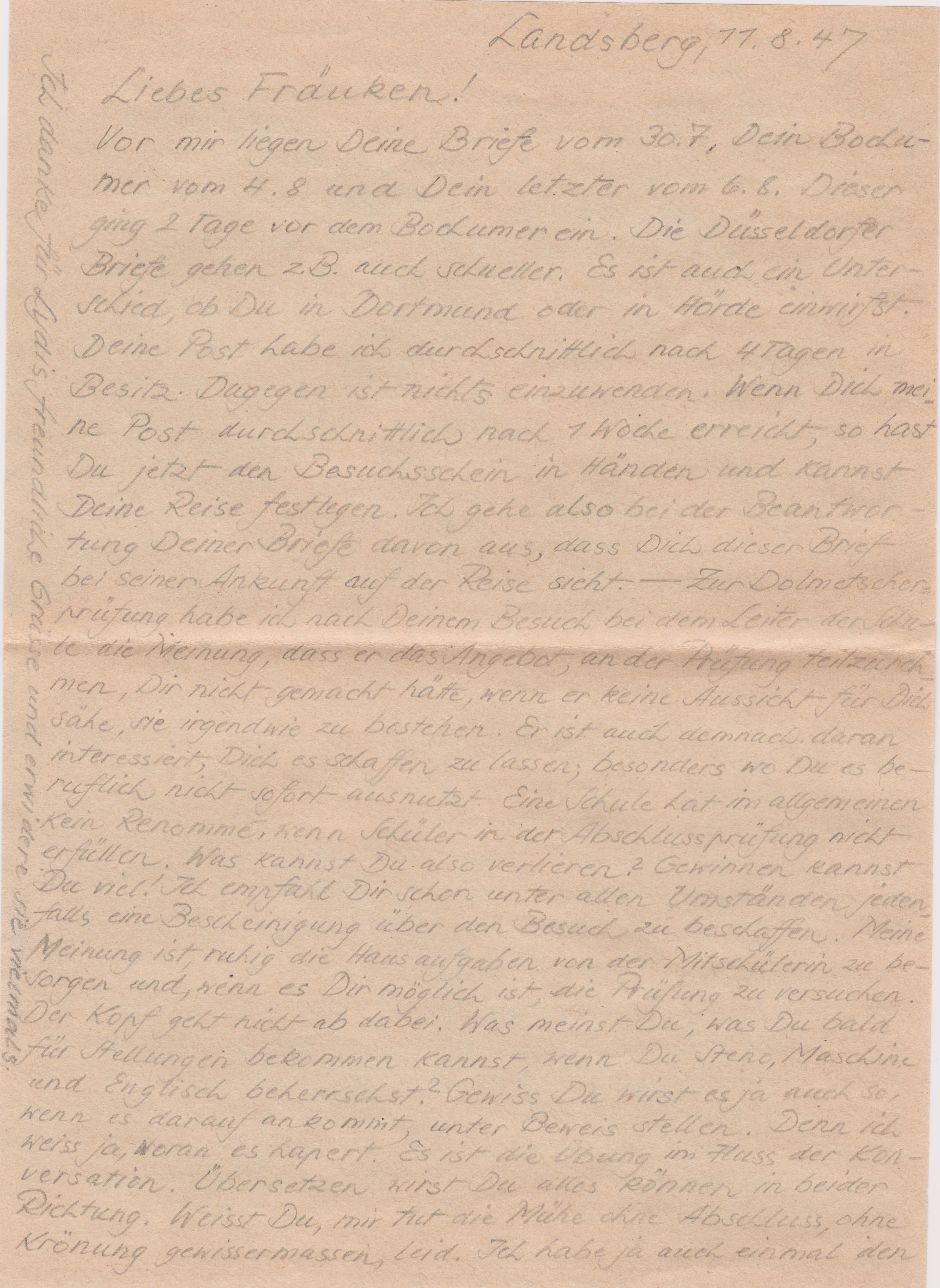 Am 11.08.1947 schrieb er diesen Brief an seine Frau Kläre: