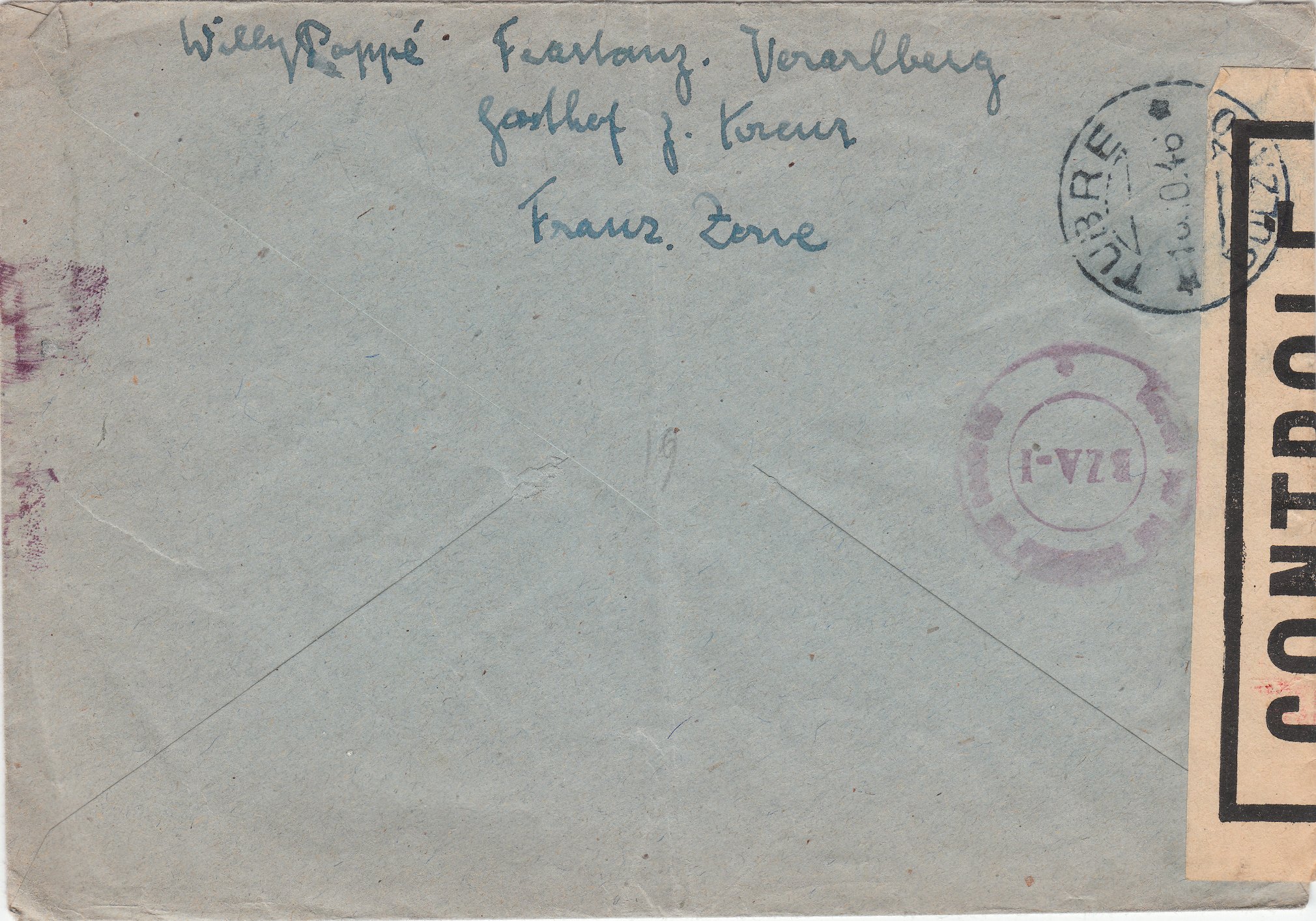Der Brief wurde linksseitig geöffnet und nach erfolgter Zensurierung mit einem Verschlußzettel CONTROLÉ, schwarz umrandet, wieder verschlossen.