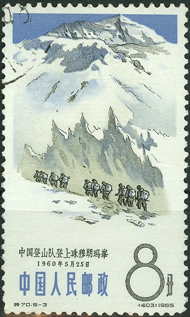 Diese chinesische Marke des Jahres 1965 zeigt den Mount Everest.