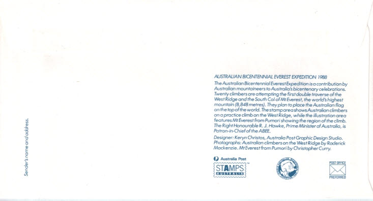 Auch Australien hat 1988 eine Expedition aus Anlaß der 200 Jahr-Feier auf den Berg geschickt.
