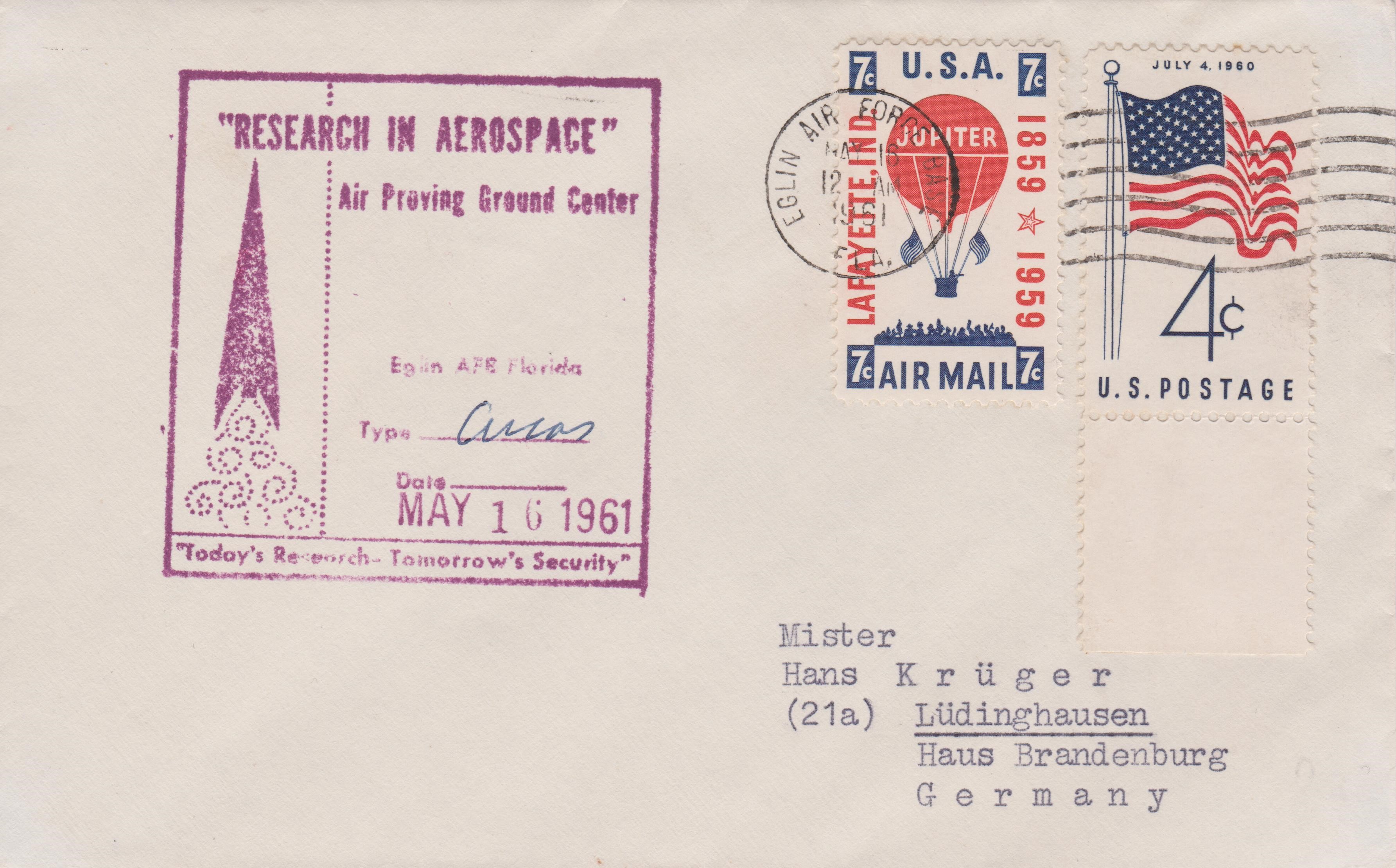 Dieser Beleg dokumentiert den Start einer ARCAS-Rakete am 16.05.1961 auf der EGLIN AIR FORCE BASE: