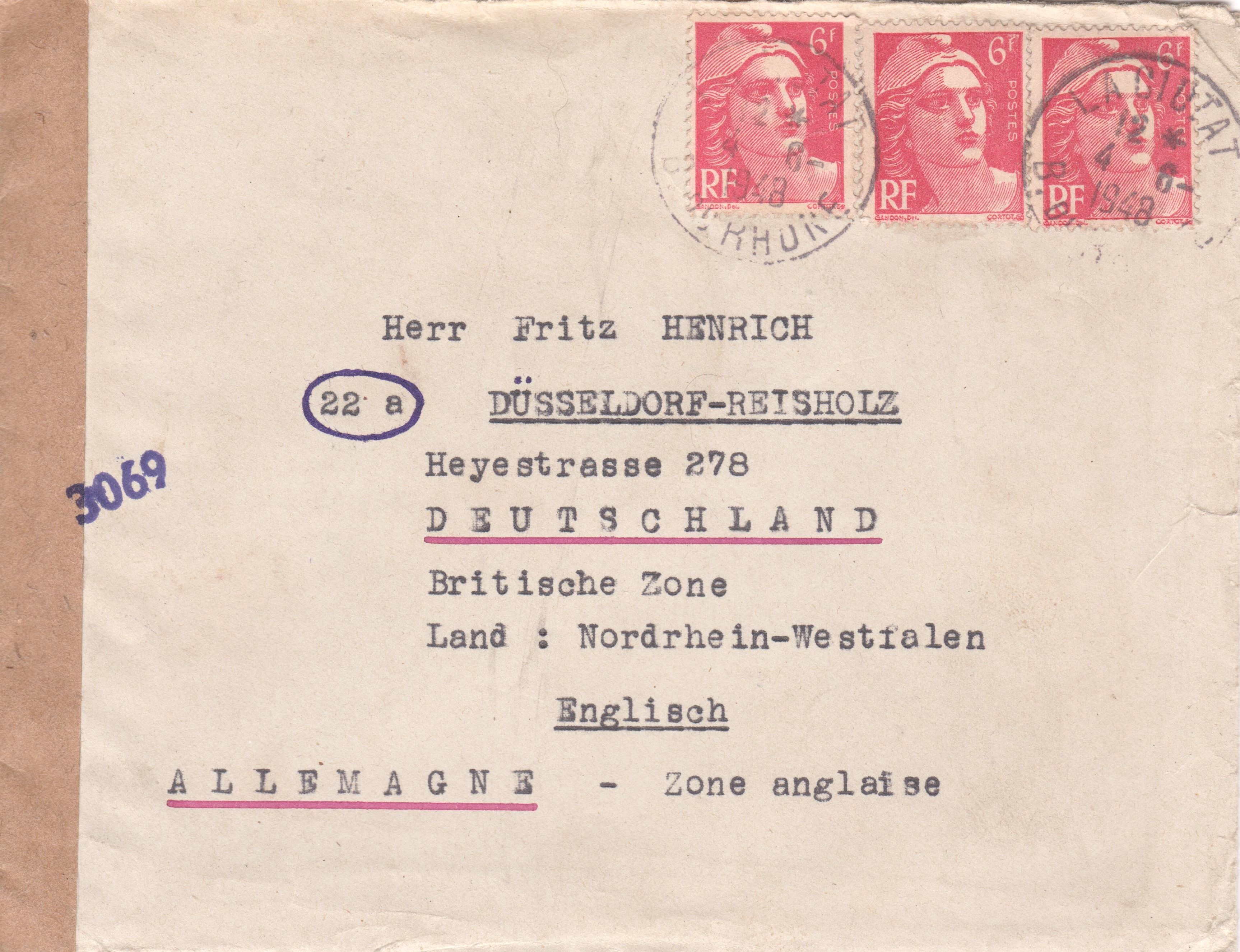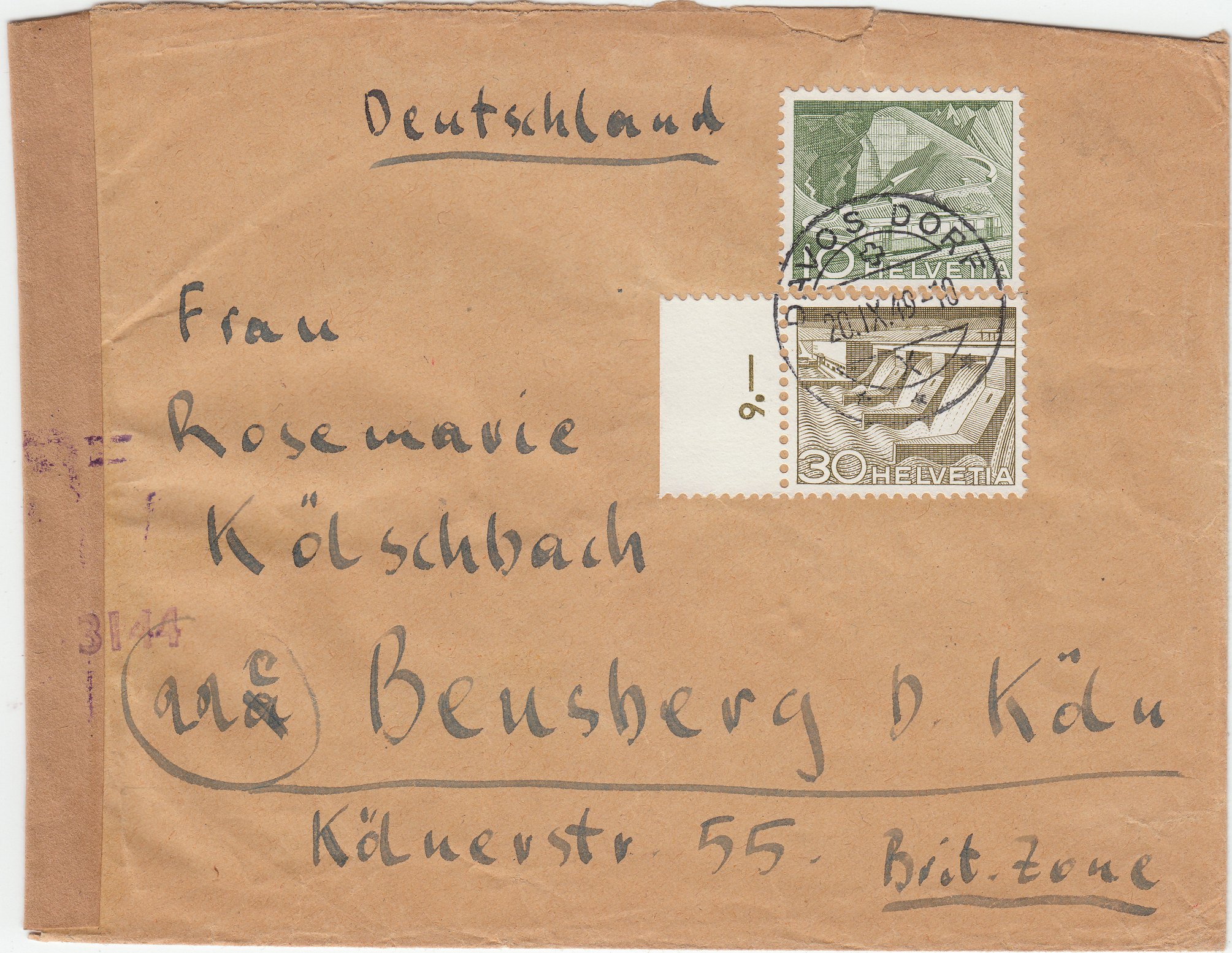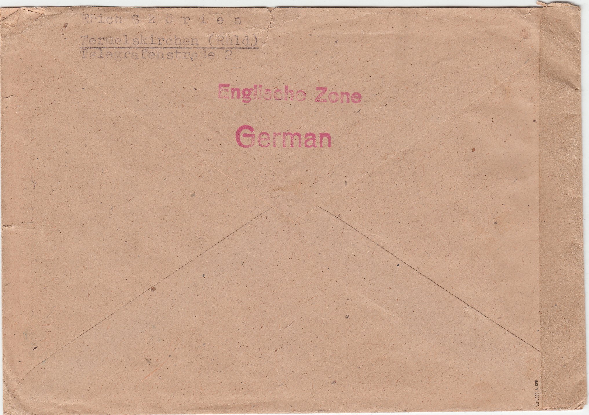 Schließlich wurde auch die britische Krone aptiert und es bleib nurmehr die vierstellige Zahl übrig, wie auf diesem Brief vom 15.09.1948 aus Spanien nach Düsseldorf zur Dokumentation des Briefverschlusses per neutralem Verschlußzettel zu sehen: