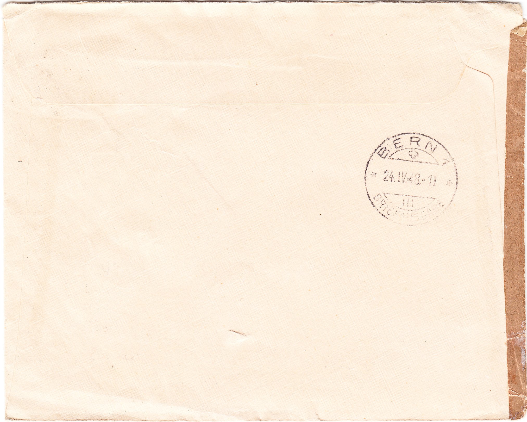 Dieser Auslandsbrief in die Schweiz (50 Pf) per Einschreiben (60 Pf), aufgegeben in Cuxhaven am 21.04.1948, wurde in der britischen Zensurstelle linksseitig geöffnet und mit einem neutralen Verschlußzettel wieder verschlossen: