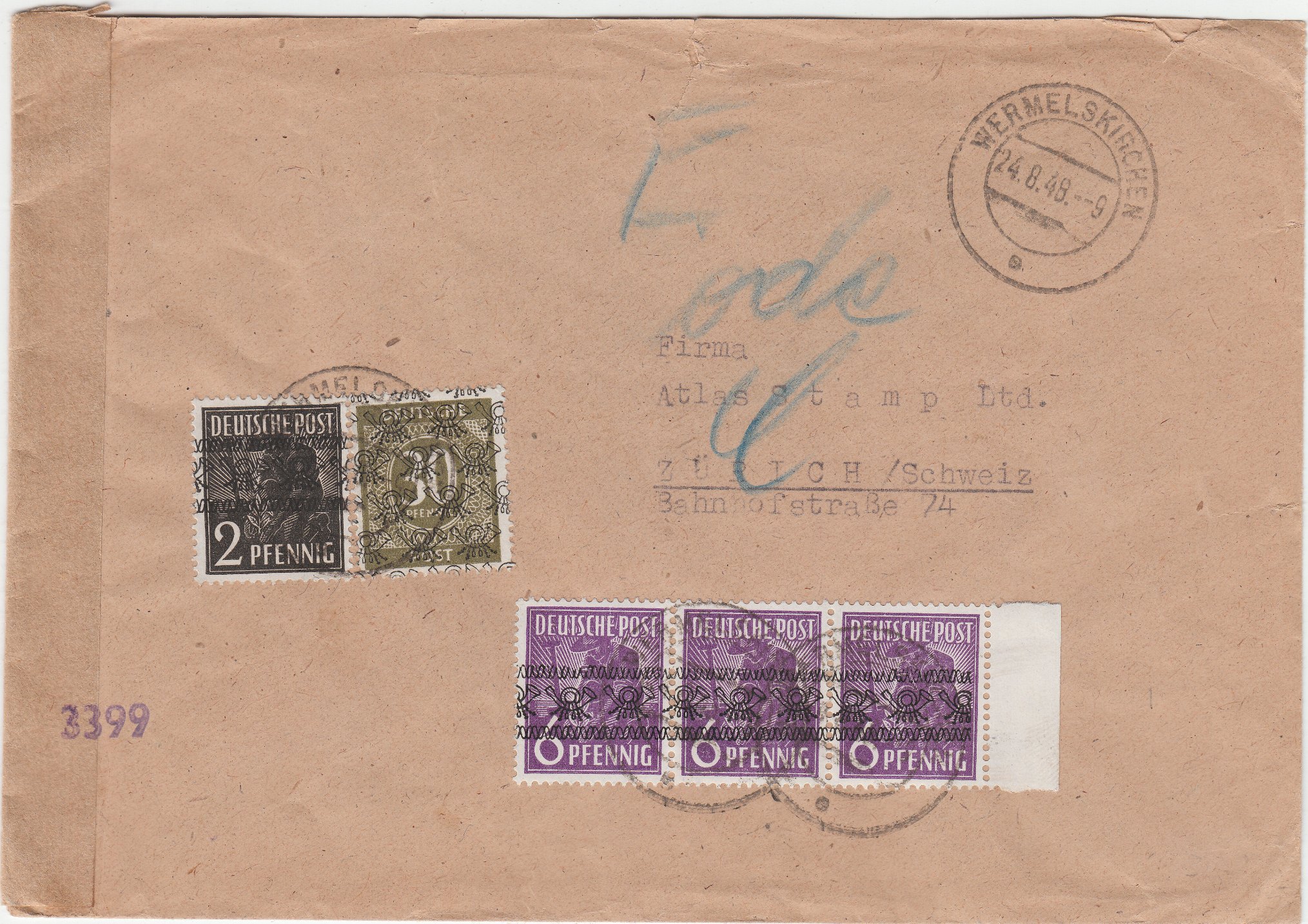 Schließlich wurde auch die britische Krone aptiert und es bleib nurmehr die vierstellige Zahl übrig, wie auf diesem Brief vom 15.09.1948 aus Spanien nach Düsseldorf zur Dokumentation des Briefverschlusses per neutralem Verschlußzettel zu sehen:
