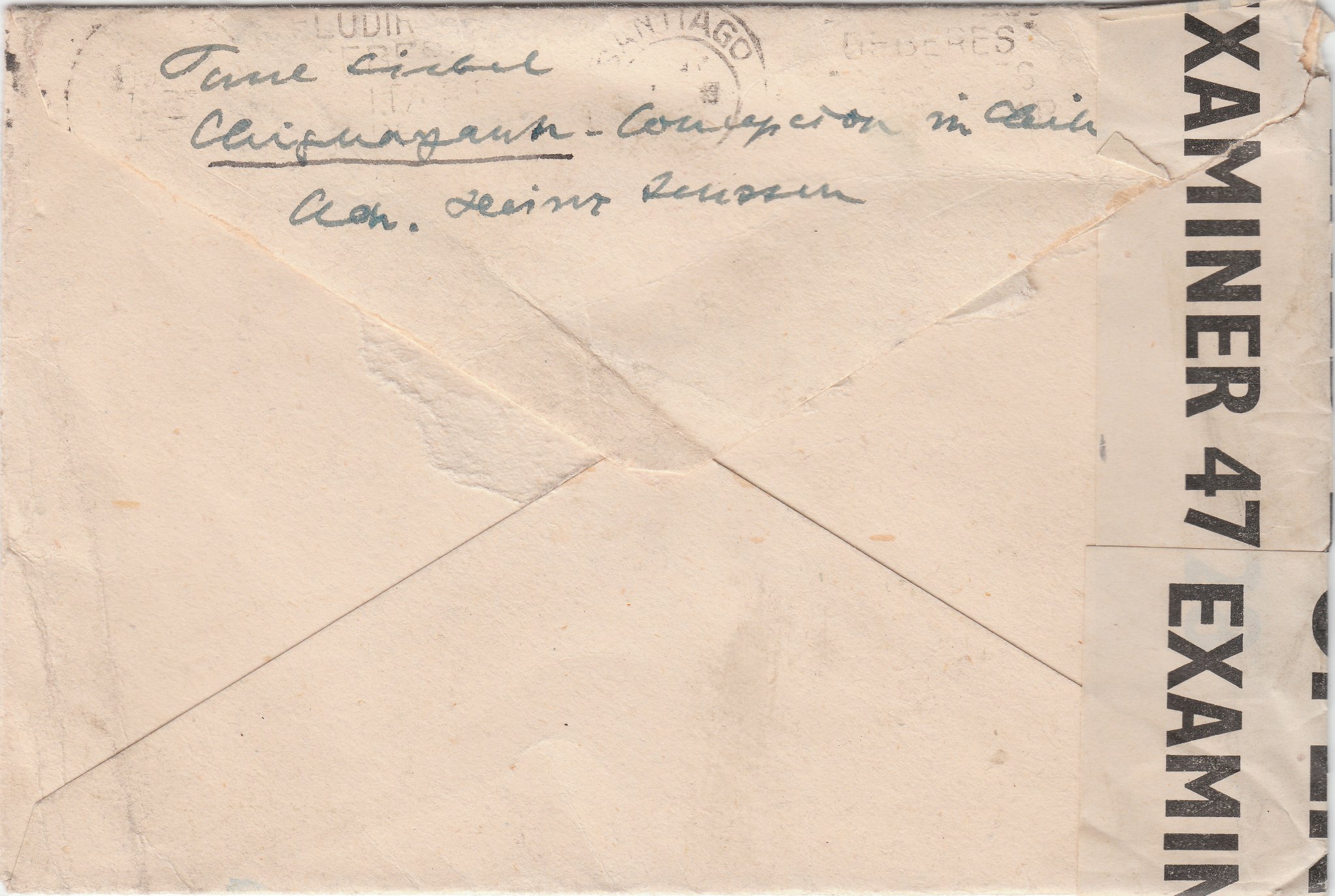 Rückseitig findet sich ein kaum lesbarer Maschinenstempel "SANTIAGO".