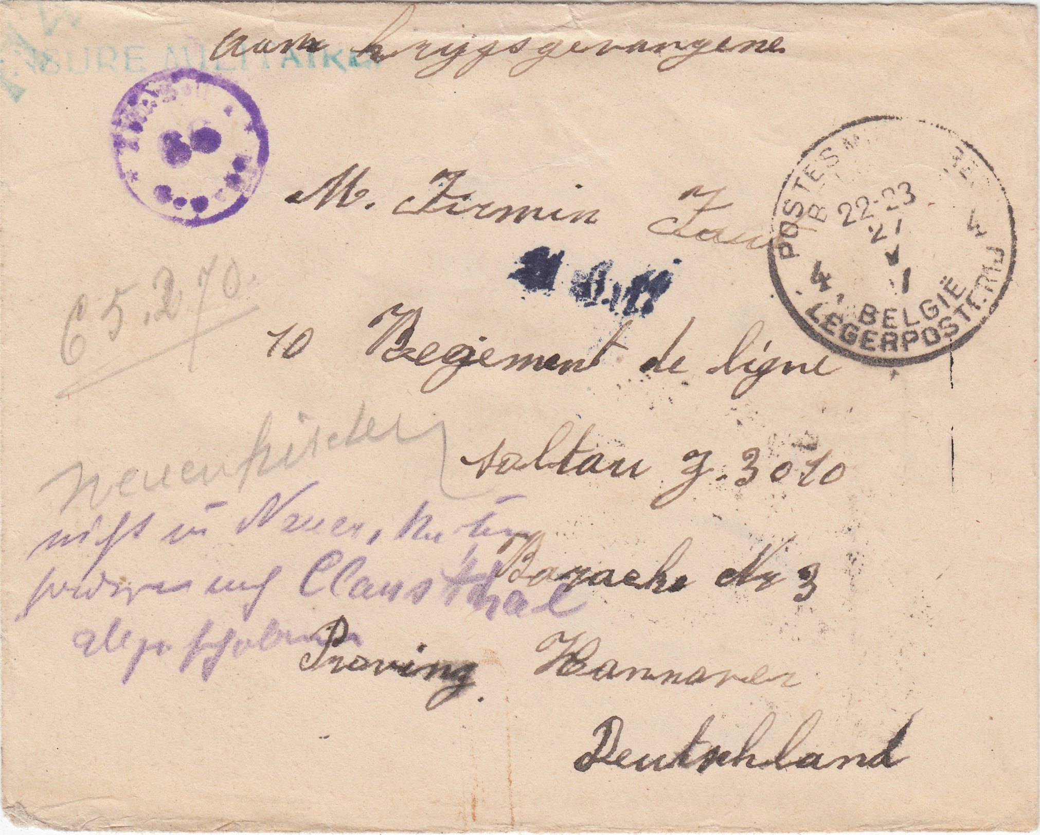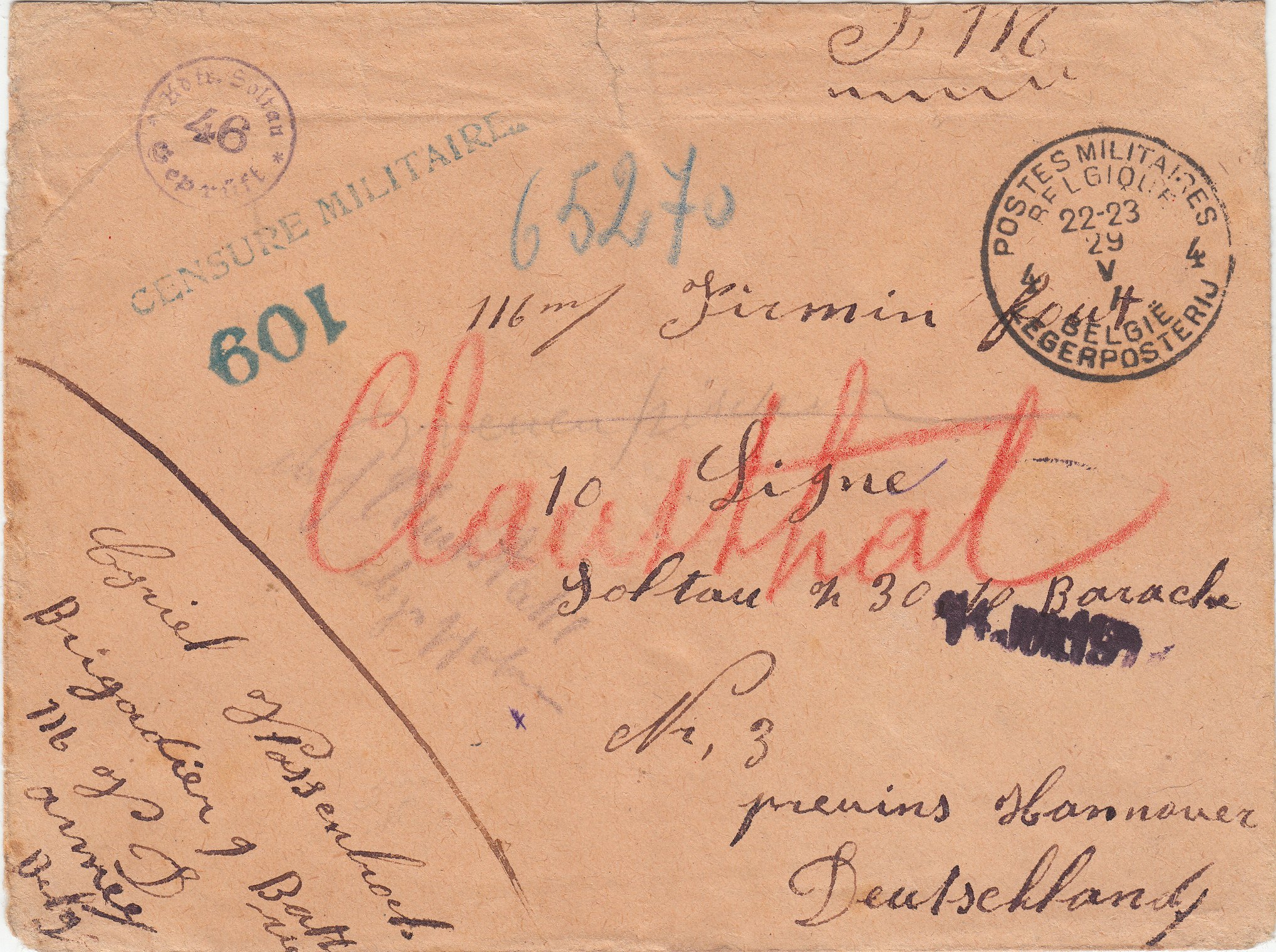 Dieser Brief wurde laut Absenderangabe von einem Angehörigen der belgischen Armee geschrieben: