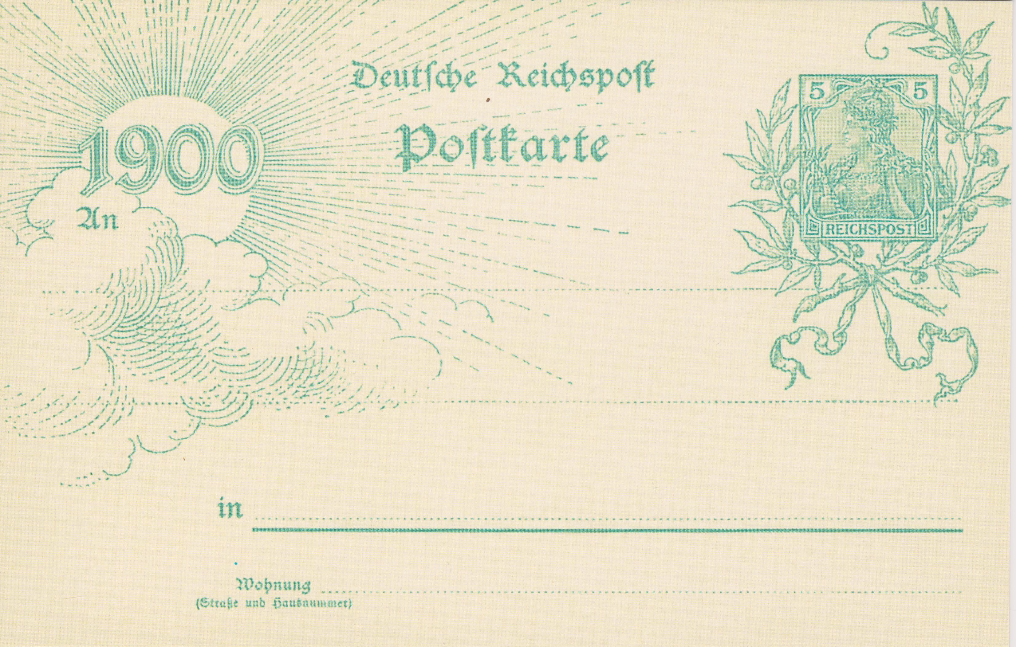 Beigelegt wurde eine ungebrauchte Postkarte 5 PF GERMANIA REICHSPOST 1900: