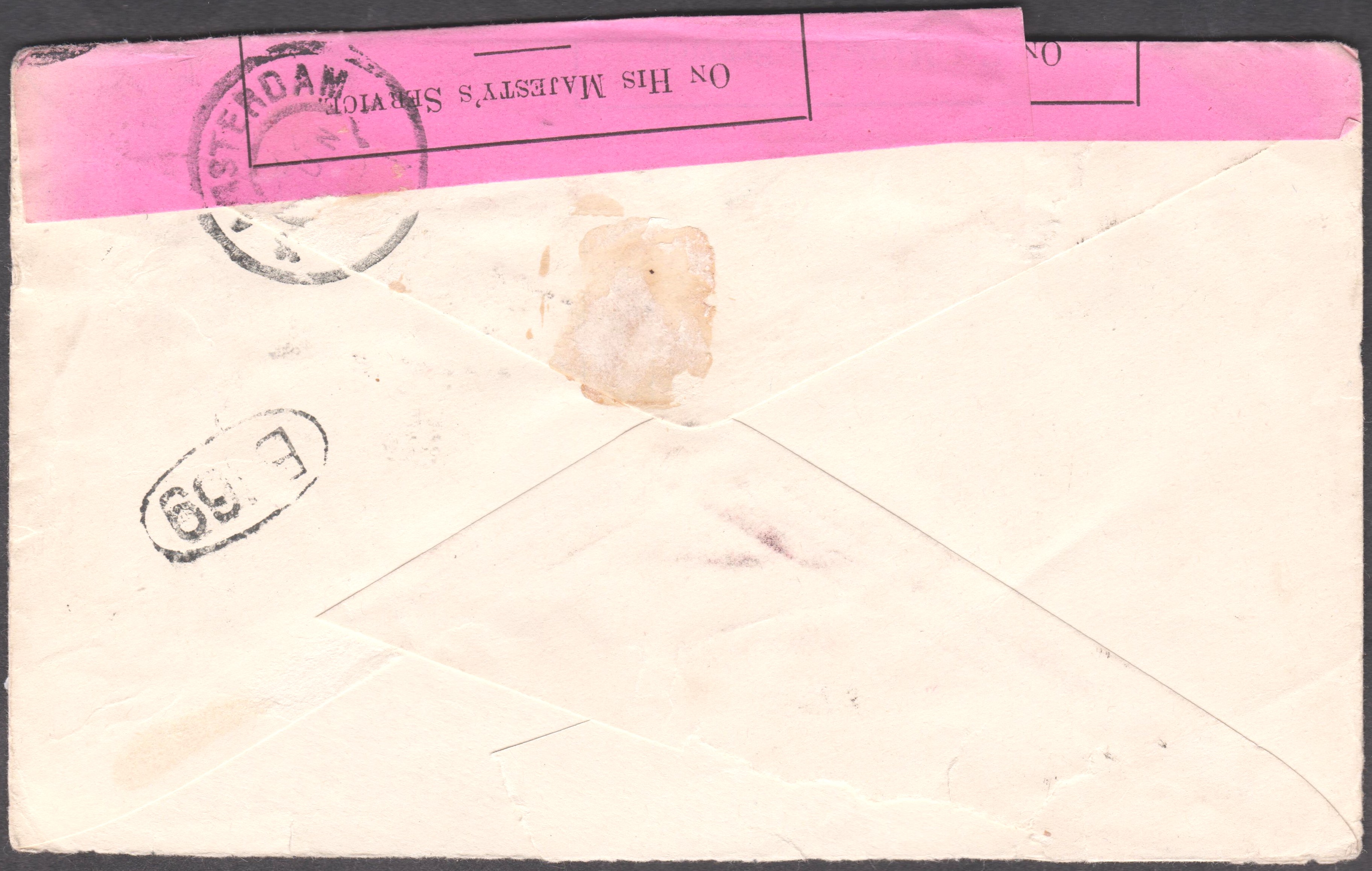 Dieser nach "Holland Amsterdam" adressierte Brief wurde am 28.05.1902 in PRETORIA aufgegeben und kam im Juni 1902 an seinem Bestimmungsort AMSTERDAM an.