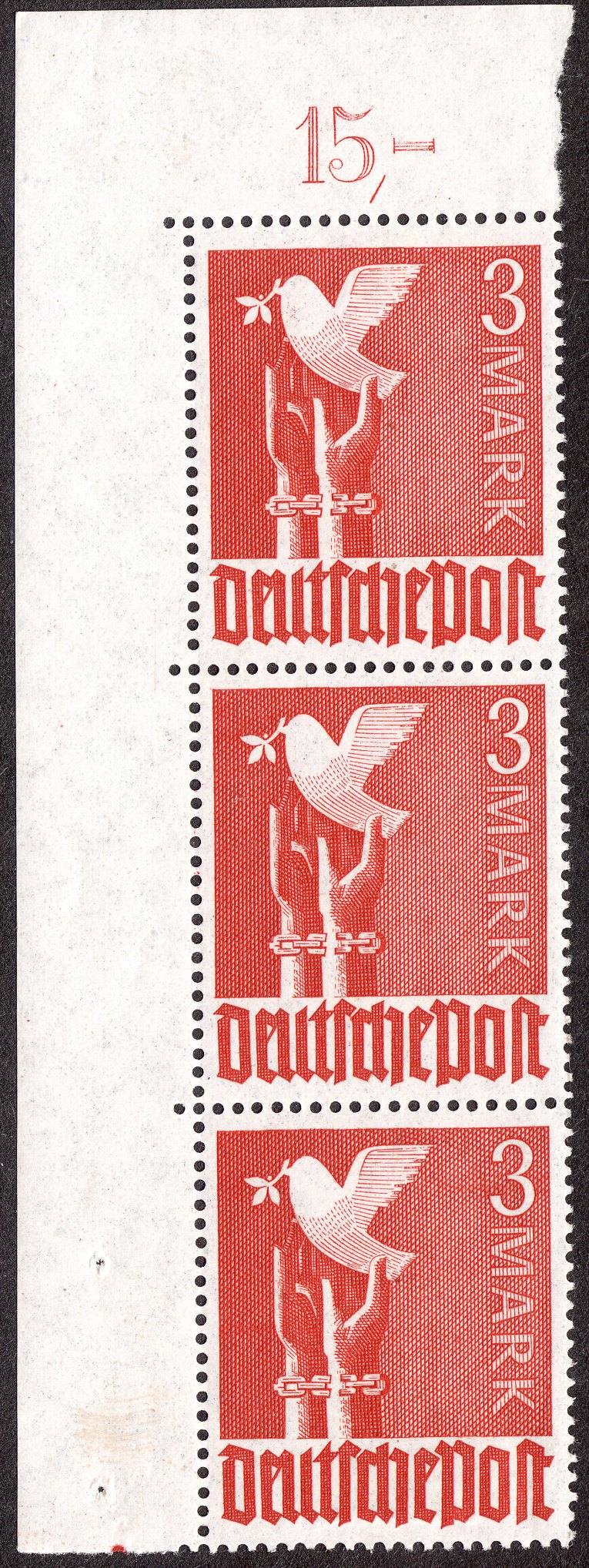 Dieser Wertbrief wurde am 19.06.1948 aufgegeben, also kurz vor der am 21.06.1948 erfolgenden Abwertung der Gemeinschaftsausgaben auf ein Zehntel des Nennwertes.