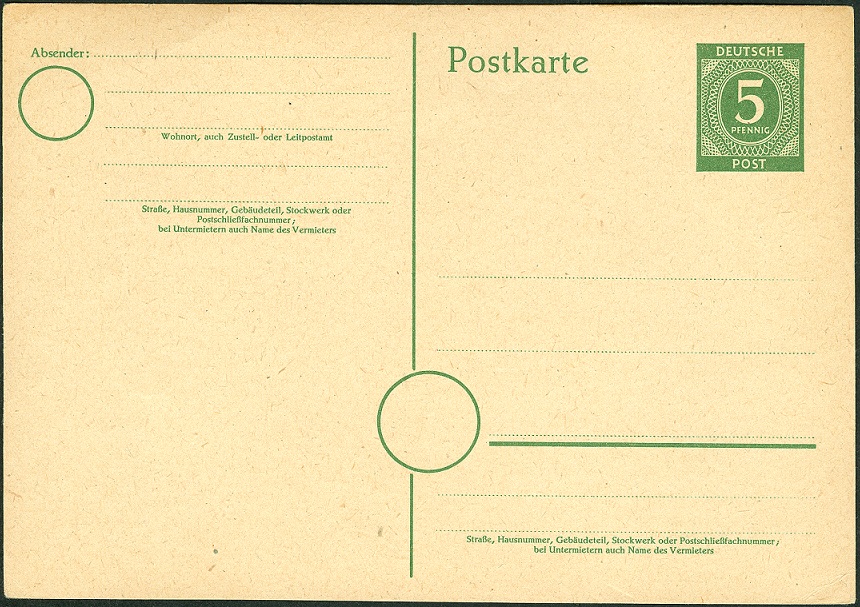 Eine der Postkarten der I. Kontrollratsausgabe ist die