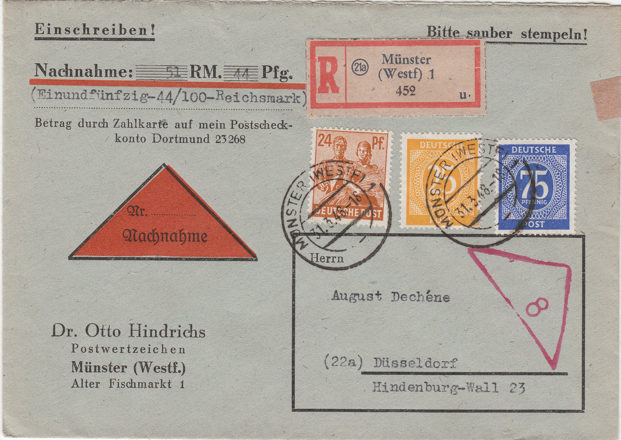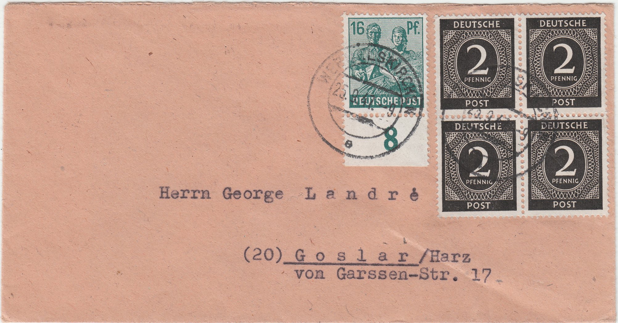 Als Frankatur diente eine MiF einer 10 Pf Ziffernserie und einer 6 Pf Arbeiterserie. Der Brief wurde portogerecht mit 16 Pfennig frankiert am 18.10.1947 in Oker aufgegeben.