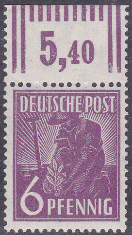 Hier zeige ich eine Marke zu 6Pf vom Oberrand.