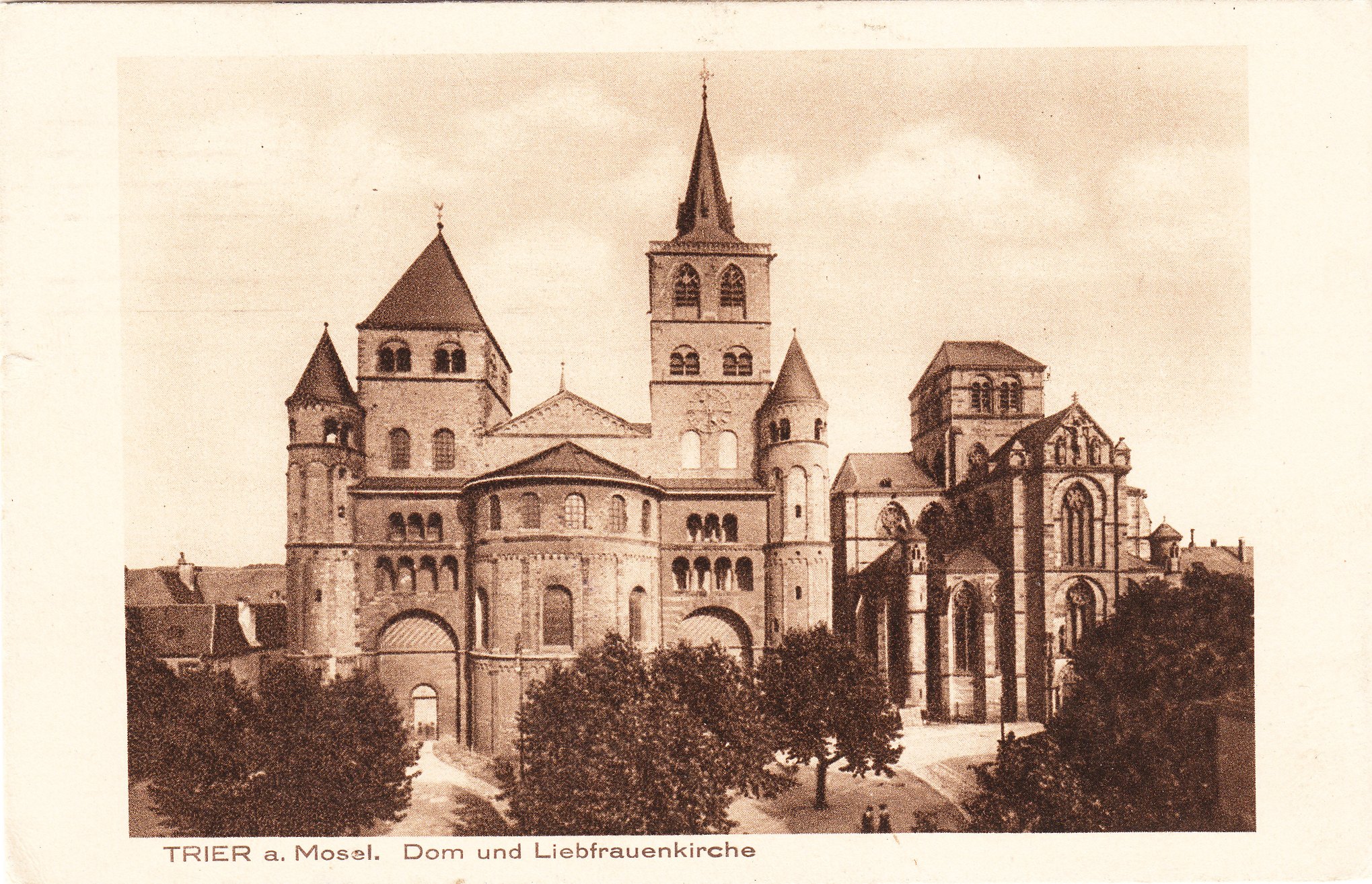 Es handelt sich um eine Ansicht "Dom und Liebfrauenkirche" aus Trier an der Mosel, die am 05.11.1917 in Trier beschrieben und portofrei als "Feldpost" adressiert wurde an "Leutnant Wery von Limont" bei der Minenwerfer-Kompanie Nr. 221, Deutsche Feldpost 976. Laut Anrede im Text hieß dieser junge Mann mit Vornamen "Robert".