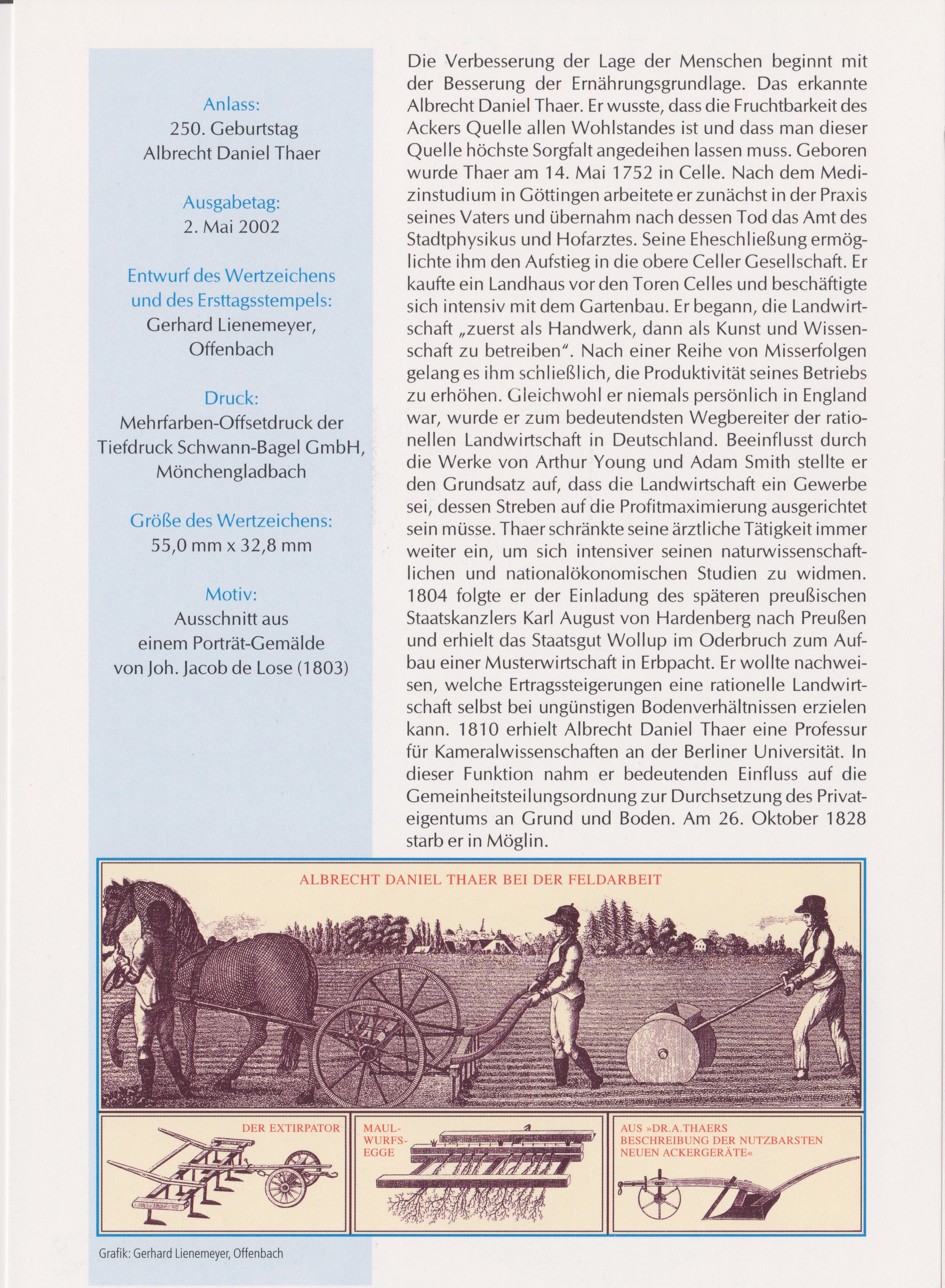 Dieses ETB 19/2002 zeigt Bund MiNr. 2255, erschienen zu seinem 250. Geburtstag: