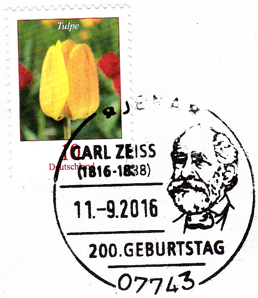 Sonderstempel vom 11.9.2016 aus Jena zum 200. Geburtstag von Carl Zeis:
