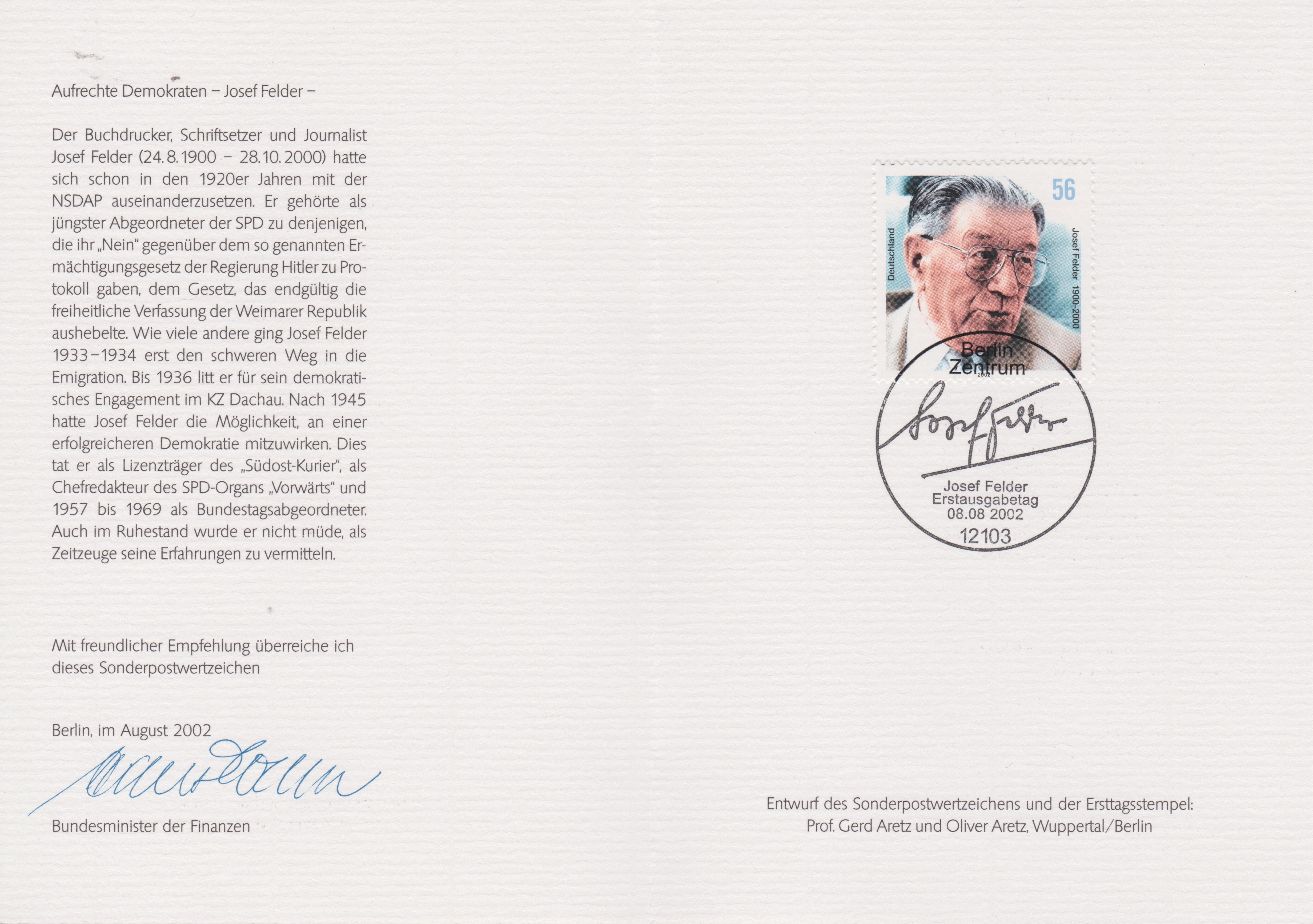 ETB 30/2002 zeigt den Politiker Josef Felder: