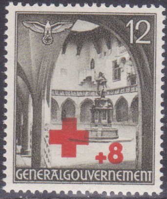Zum 400. Todestag von Nikolaus Kopernikus erschien diese Marke Generalgouvernement MiNr. 104 in geänderter Farbe und links und rechts mit senkrechtem Eindruck des Sterbetages und des Gedenktages.