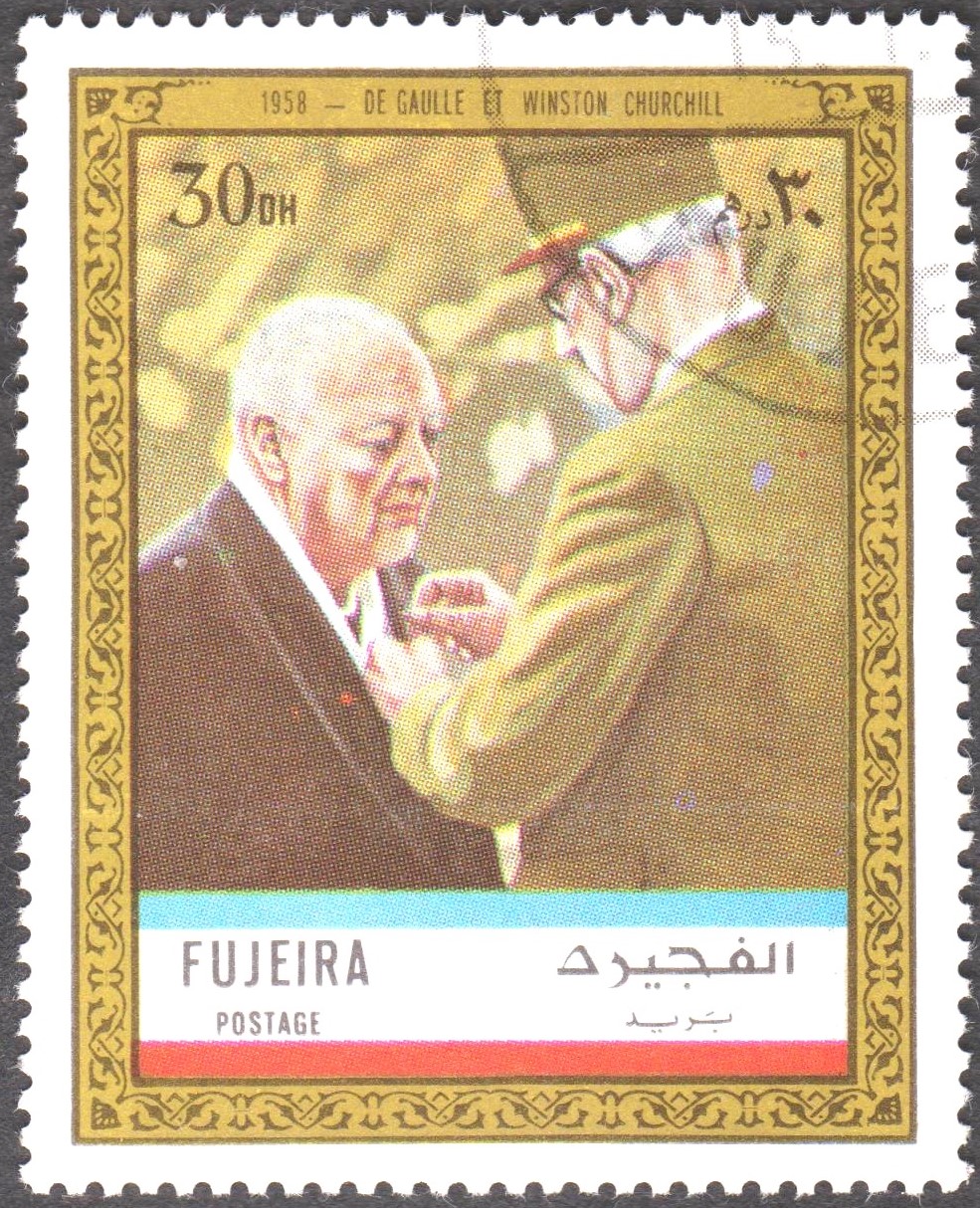 Fujeira MiNr. 945 zeigt Winston Churchill mit Charles de Gaulle: