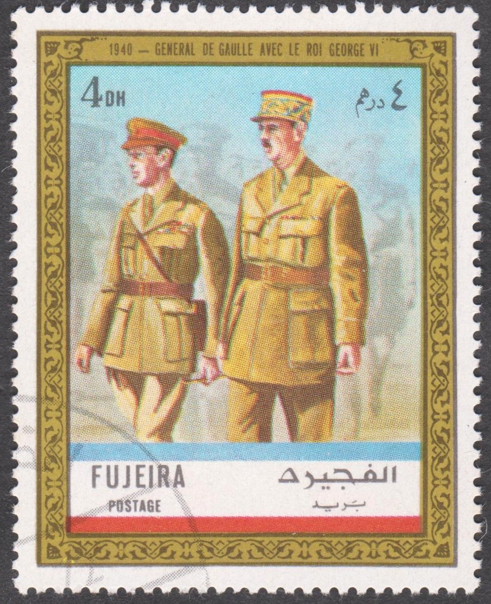 Fujeira MiNr. 939 zeigt Charles de Gaulle mit König Georg VI.: