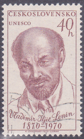 Eine Marke aus der Tschechoslowakei (MiNr 1927) zeigt ein Porträt von Lenin.