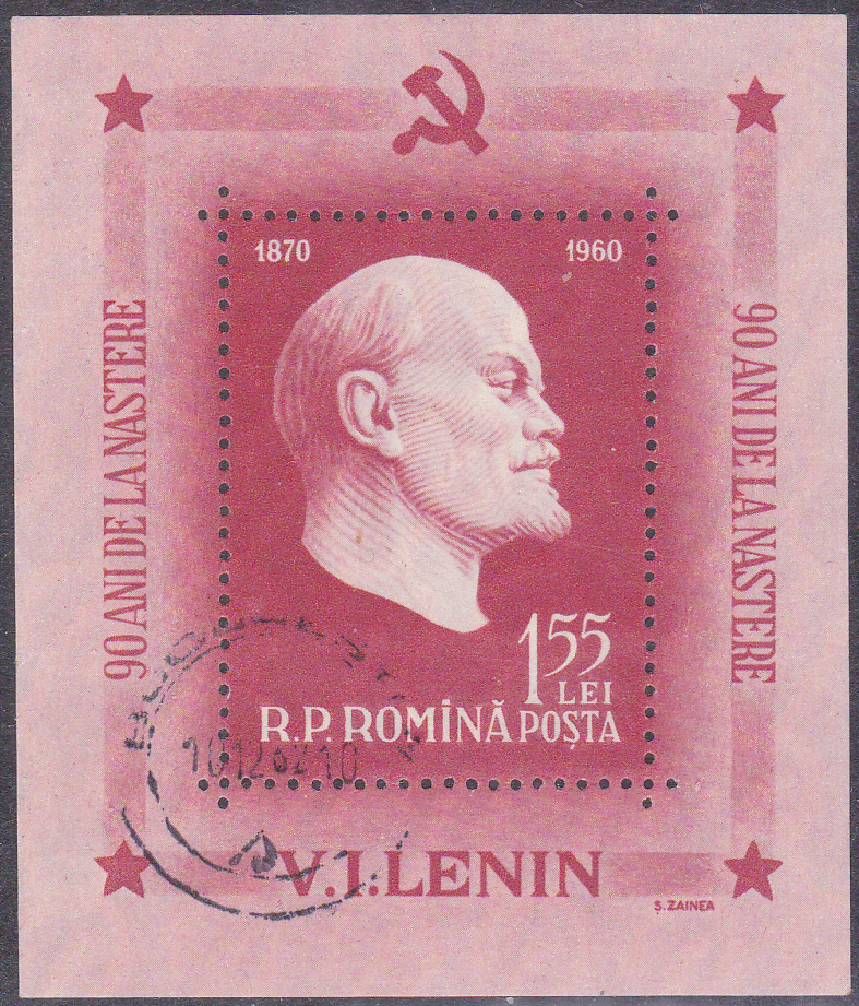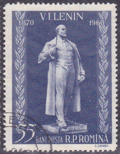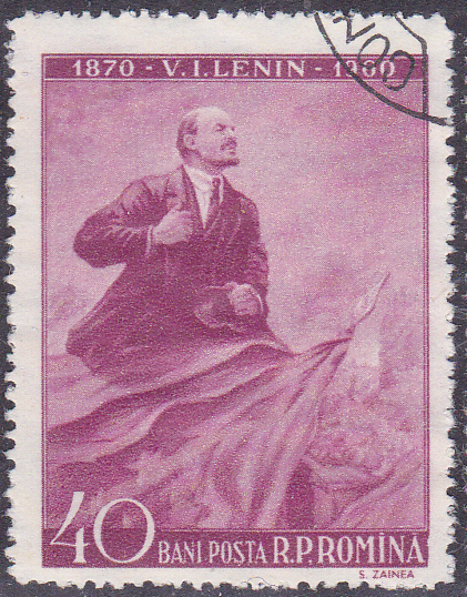 Zum 90. Geburtstag Lenins erschien in Rumänien diese Marke (MiNr 1840) mit dem Gemälde "Lenin auf dem Podium", gemalt postum im Jahre 1929 von Aleksandr Gerasimov (1881-1963, sowjetischer Maler).