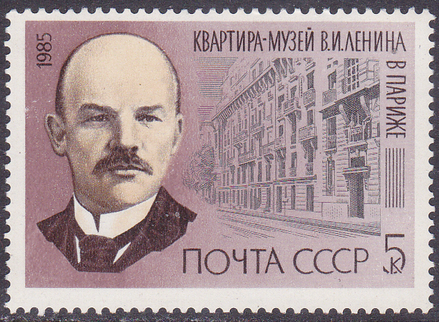 Zum 115. Geburtstag von Wladimir Lenin erschien in der Sowjetunion diese Marke (MiNr 5503) mit einem Porträt von Lenin und Lenins Wohnung in Paris.