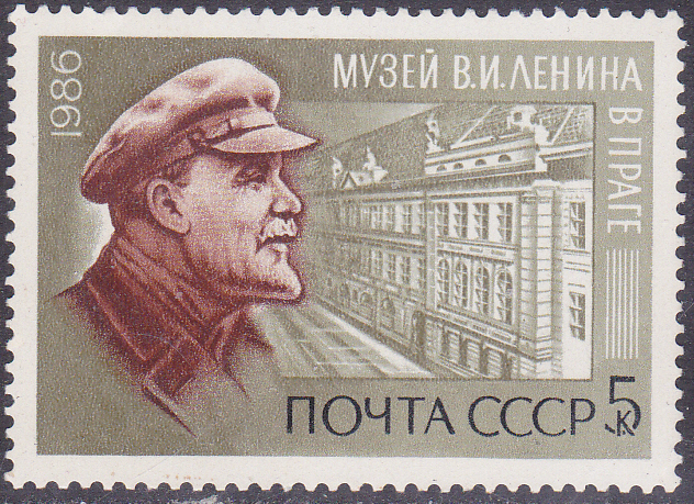 Zum 116. Geburtstag von Wladimir Lenin erschien in der Sowjetunion diese Marke (MiNr 5597) mit einem Porträt von Lenin vor dem Lenin-Museum in Prag.