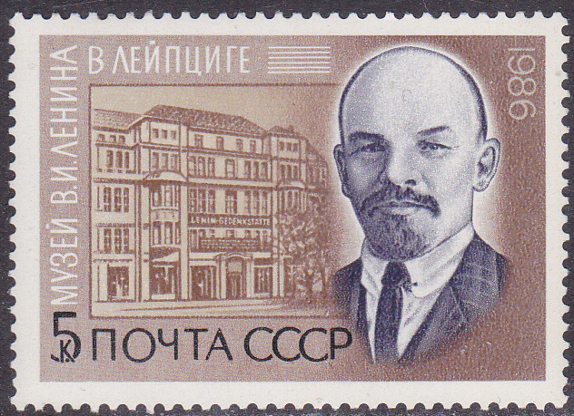 Zum 116. Geburtstag von Wladimir Lenin erschien in der Sowjetunion auch diese Marke (MiNr 5598) mit einem Porträt von Lenin vor dem Lenin-Museum in Leipzig.