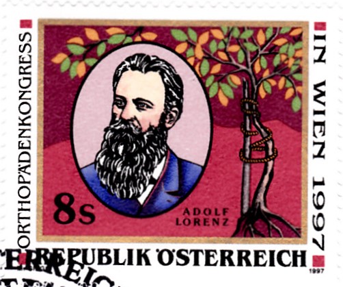 Auf einer Marke aus Österreich (MiNr 2229) zum Orthopädenkongress 4997 in Wien wird auch ein Porträt von Adolf Lorenz gezeigt.
