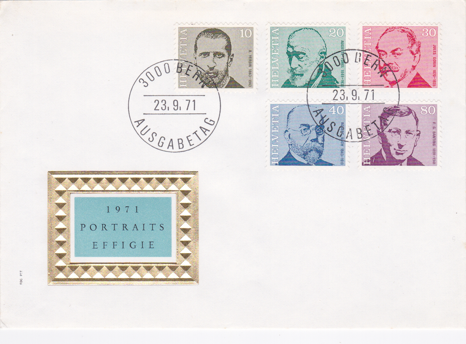 FDC der Post der Schweiz mit den Marken der Serie "Porträts: Mediziner" aus dem Jahre 1971 (die Mediziner wurden hie schon alle kurz vorgestellt).