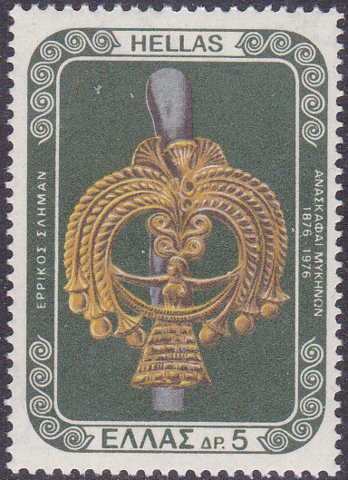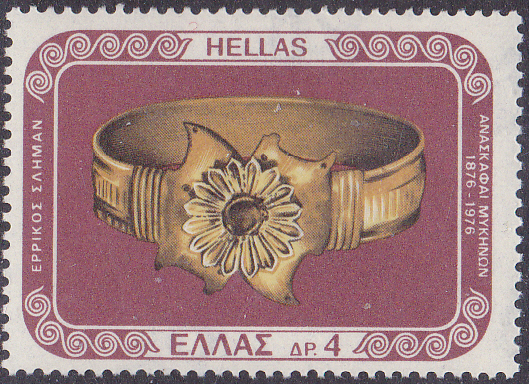 Weitere Marken der Serie aus Griechenland zeigen Funde aus diesen Ausgrabungen, auf dieser Marke (MiNr 1354) sehen wir ein Goldenes Armband.