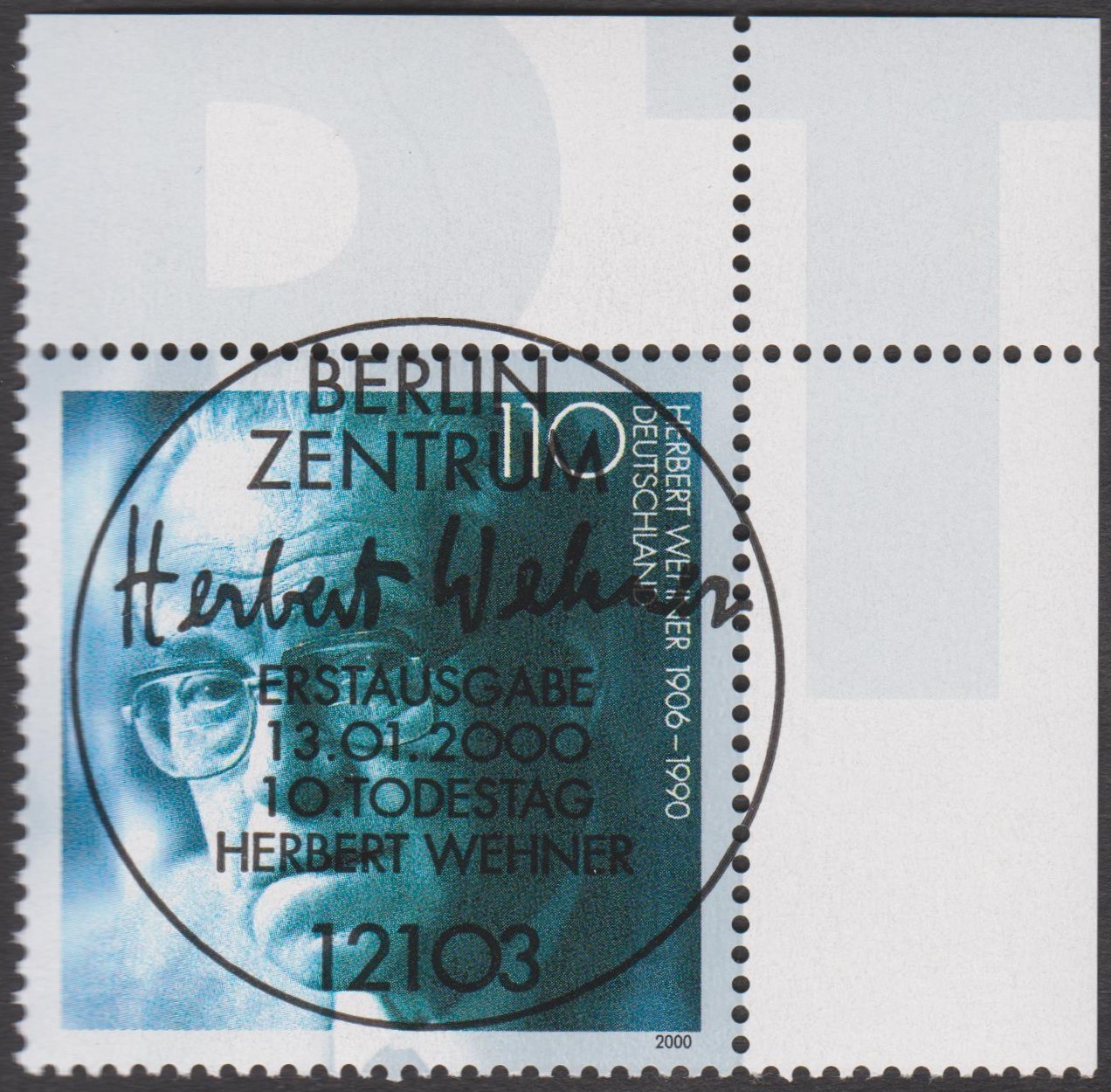 Rechte obere Bogenecke des Zehnerbogens (= Feld 5) Bund MiNr. 2092 mit ESST BERLIN: