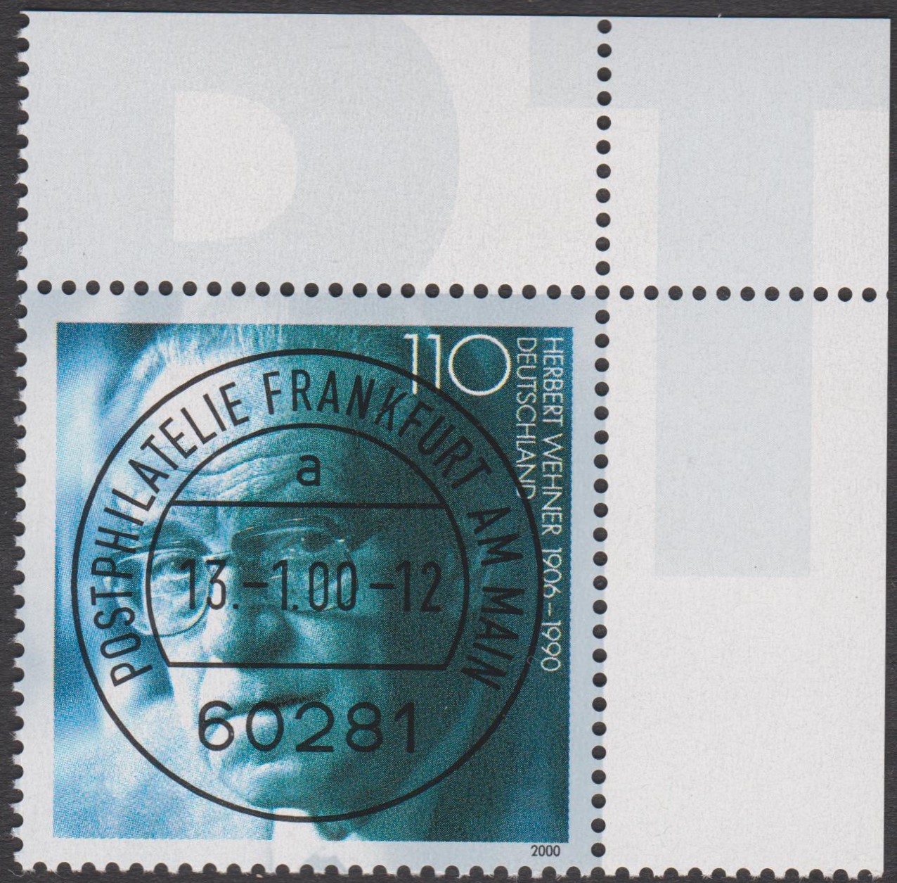 Rechte obere Bogenecke des Zehnerbogens (= Feld 5) Bund MiNr. 2092 mit EST POSTPHILATELIE FRANKFURT AM MAIN: