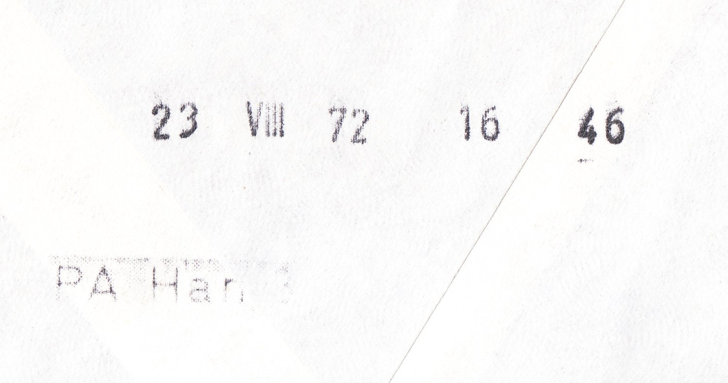 Rückseitig Durchgangsstempel vom Postamt Hannover vom 23.08.1972 um 16:46 Uhr: