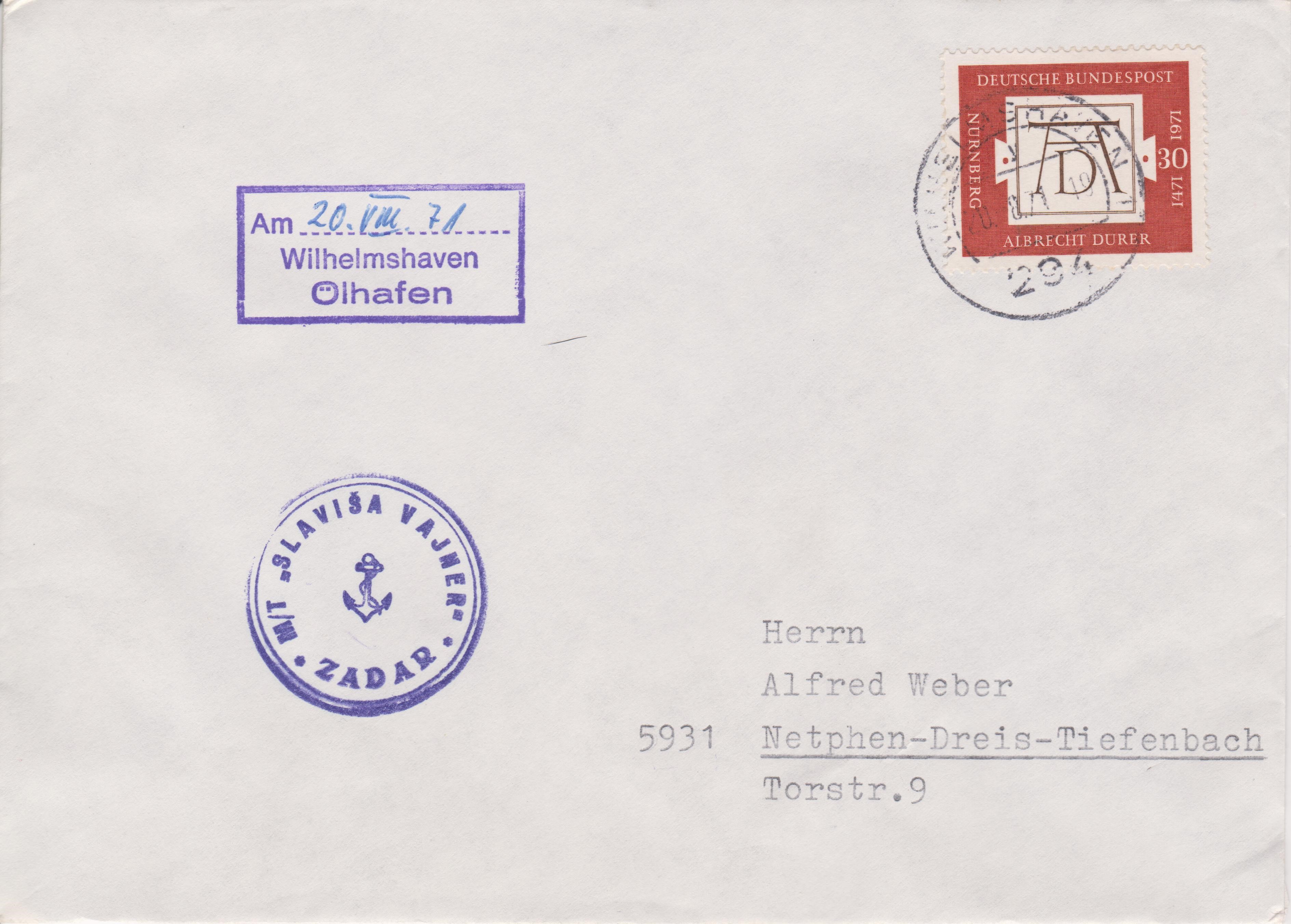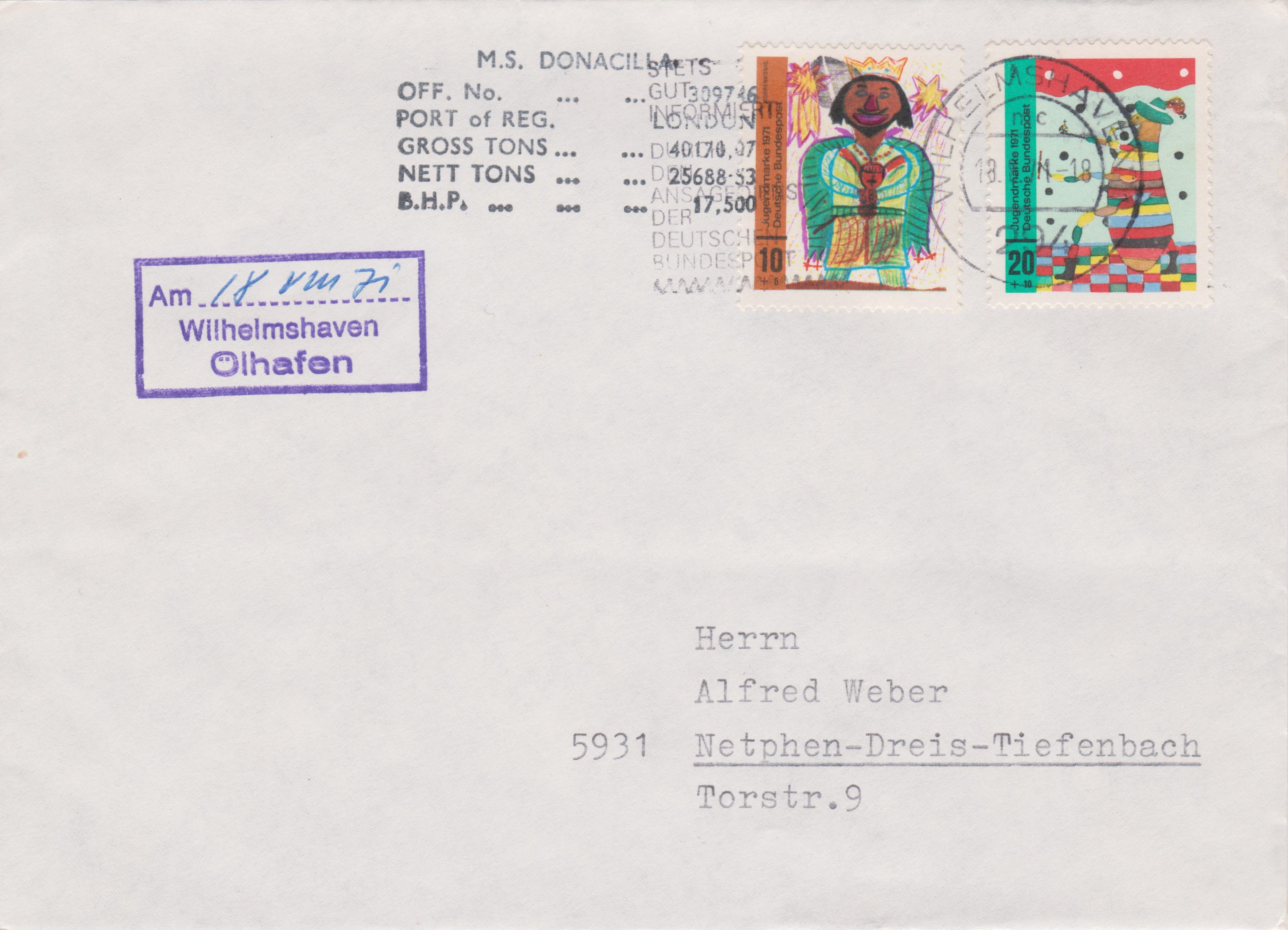 Dieser Beleg vom 17.05.1973 zeigt einen Bordstempel des Tankers BRITISH DIPLOMAT sowie den Aufgabestempel