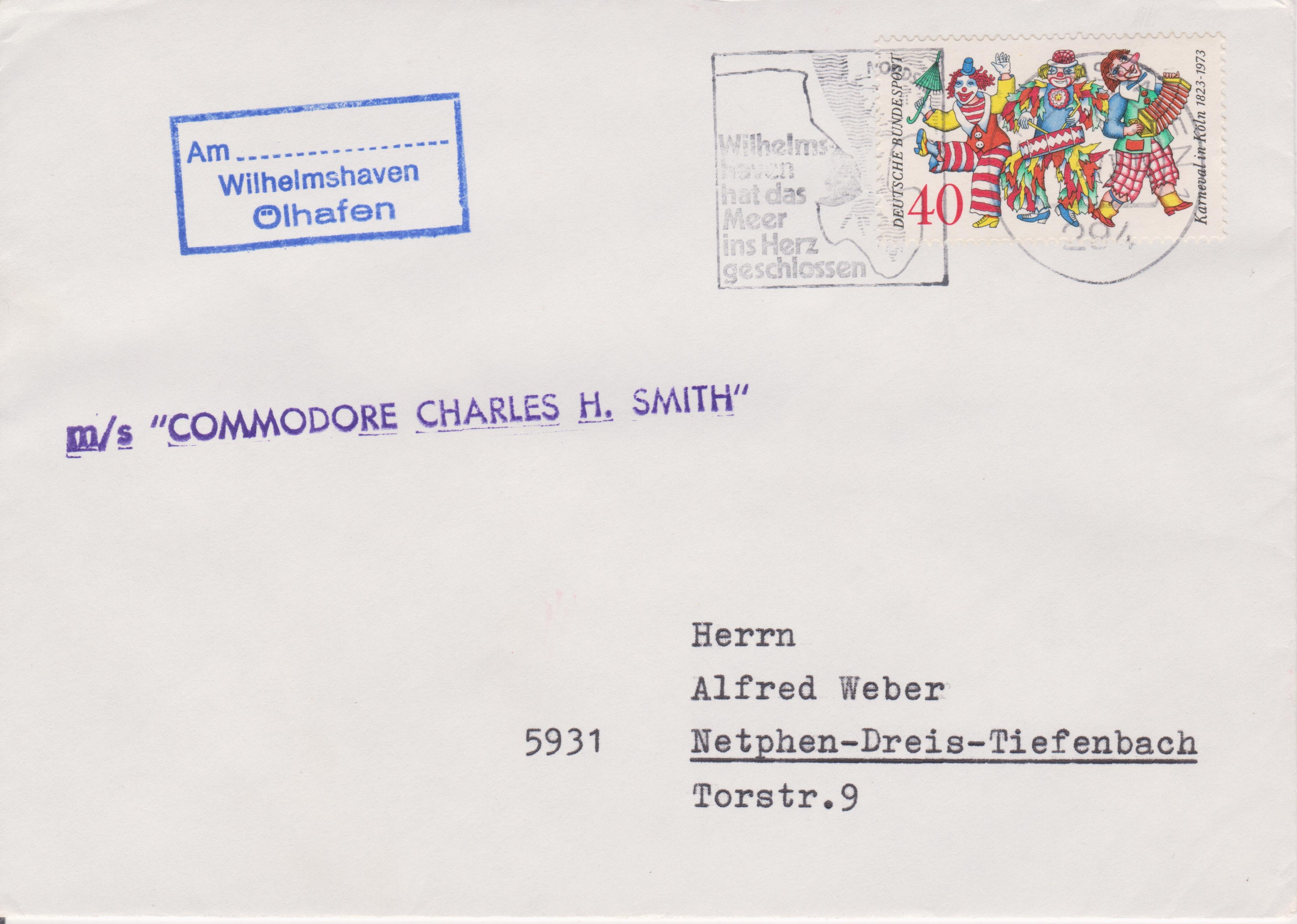Dieser Beleg dokumentiert den Aufenthalt des Tankers COMMODORE CHARLES H. SMITH im Ölhafen Wilhelmshaven: