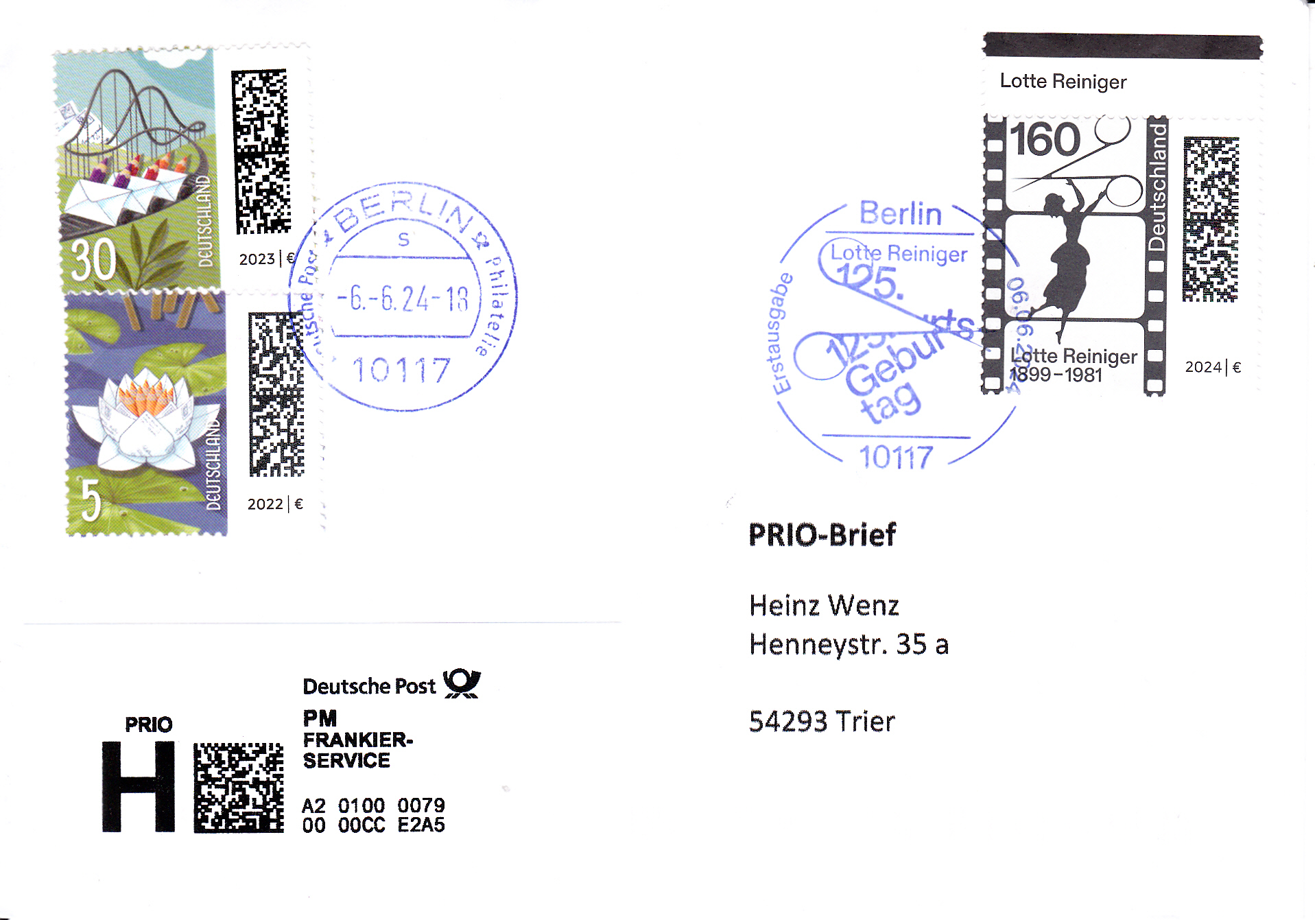 Prio-Brief vom Ersttag mit dieser Marke und dem Ersttagsonderstempel aus Berlin. Die Zusatzfrankatur wurde mit einem Tagesstempel entwertet.