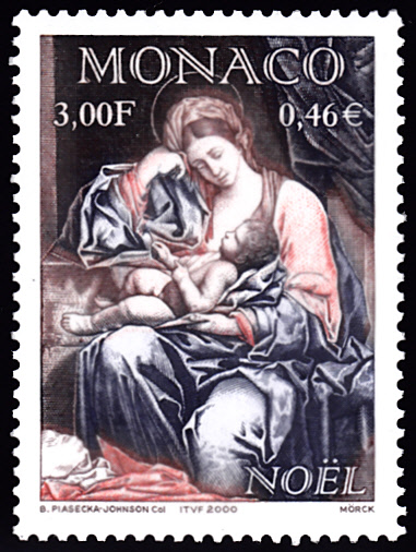Auf der Weihnachtsmarke 1999 aus Monaco wird das Gemälde "Hl. Maria mit Kind" von Simone Cantarini gezeigt.