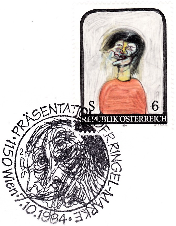 In der Reihe "Moderne Kunst in Österreich" ist auch eine Marke (MiNr 2140) mit dem Gemälde "Kopf" von Franz Ringel erschienen.