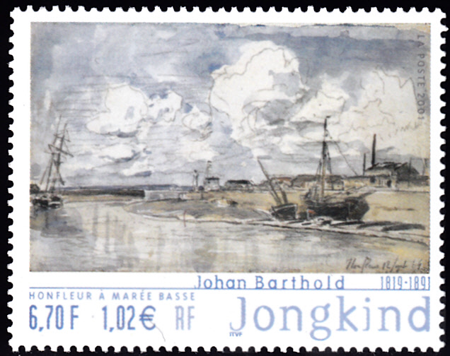 Auf dieser Marke aus Frankreich (MiNr 3568) ist das Gemälde "Honfleur bei Ebbe" von Johan Barthold Jongkind abgebildet.