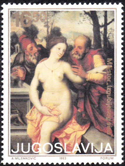 "Susanna mit den Alten" vom Meister des "Verlorenen Sohns" ist das Motiv dieser Marke aus Jugoslawien (MiNr 2016).