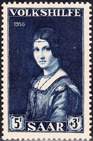 Auf einer Marke aus dem Volkshilfesatz des Saarlandes von 1956 wird sein Werk "La belle ferronnière" gezeigt.