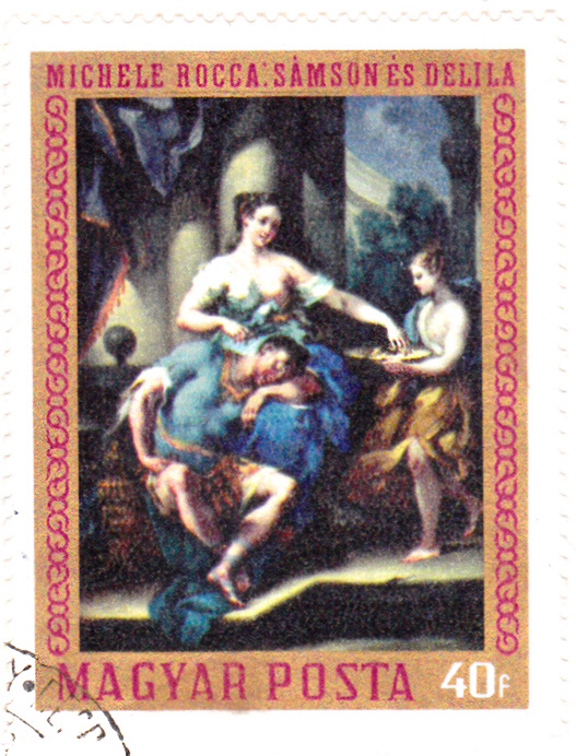In einer Serie "Gemälde" ist in Ungarn auch eine Marke (MiNr 2586 A) mit dem Gemälde "Samson und Delila" von Michele Rocca erschienen. Hier wurde eine Marke auf einem Brief mit Einschreiben in die Schweiz zur Frankatur verwendet. Die Marke gibt es auch geschnitten. Rückseitig wurden zwei Marken zur Vervollständigung des Portos verklebt.